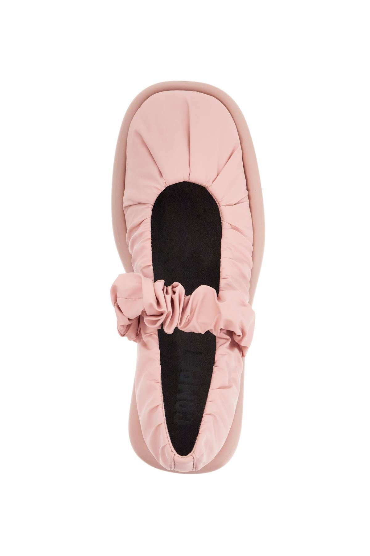 The Camper Onda Ballerina Mary Jane model is made of textured fabric with a removable OrthoLite® Recycled™ insole and XL EXTRALIGHT® EVA sole
