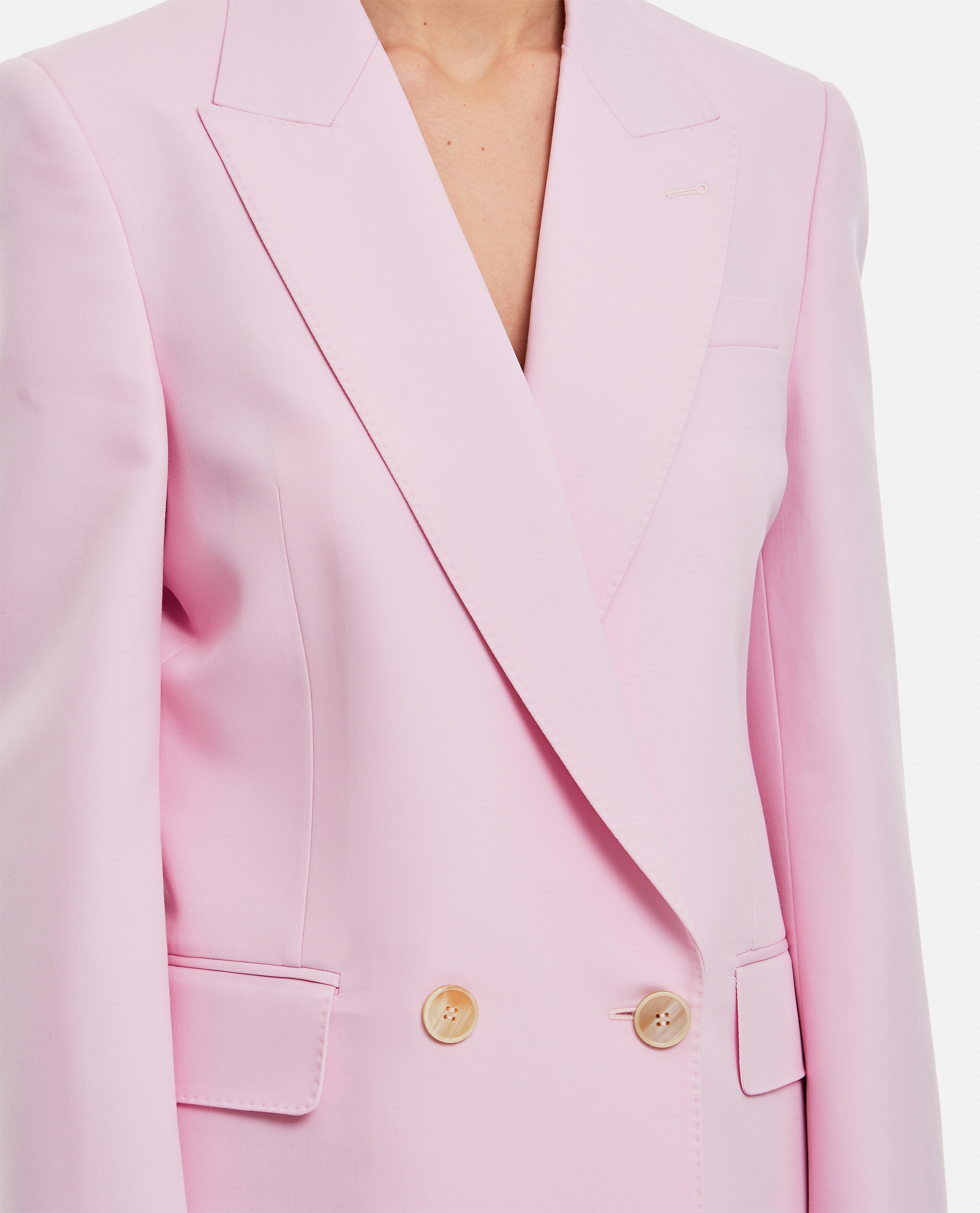 Double-breasted boxy jacket.Wide peak lapels.Slit pocket on the chest.Two flap pockets at the sides.Color: pink.
