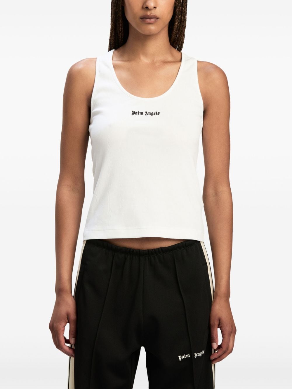 white/black stretch-cotton ribbed knit embroidered logo to the front scoop neck sleeveless racerback straight hem