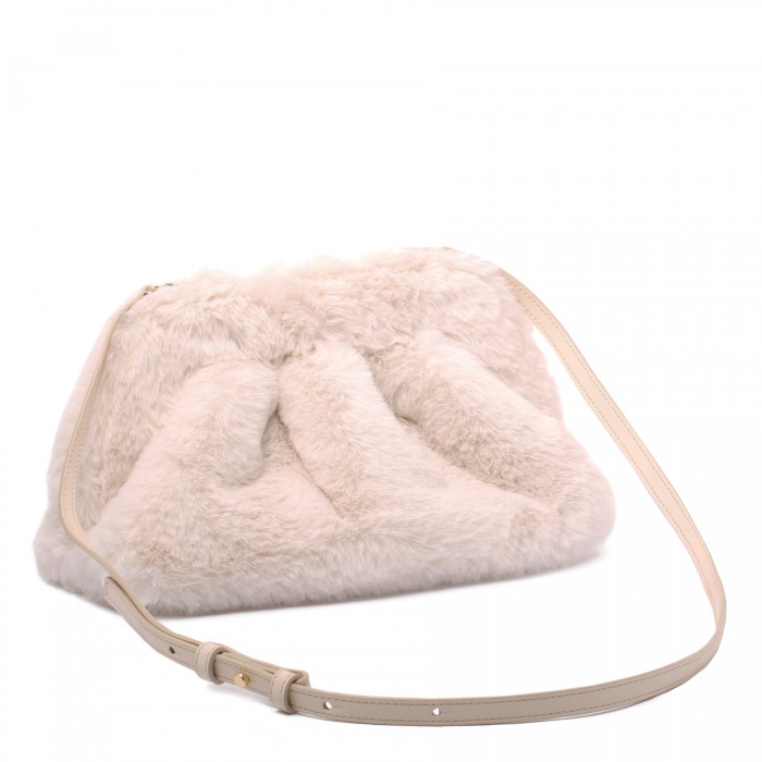 Ivory faux fur Tia clutch bag from TheMoire featuring fluffy effect, magnetic closure, tonal detachable and adjustable shoulder strap.?
