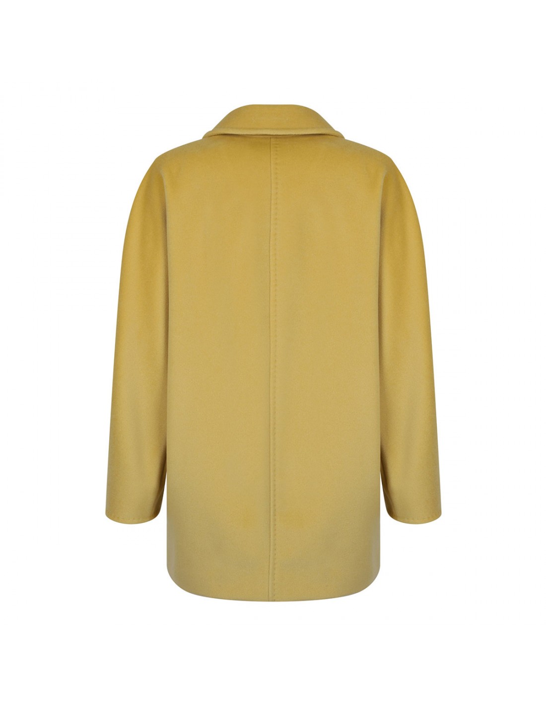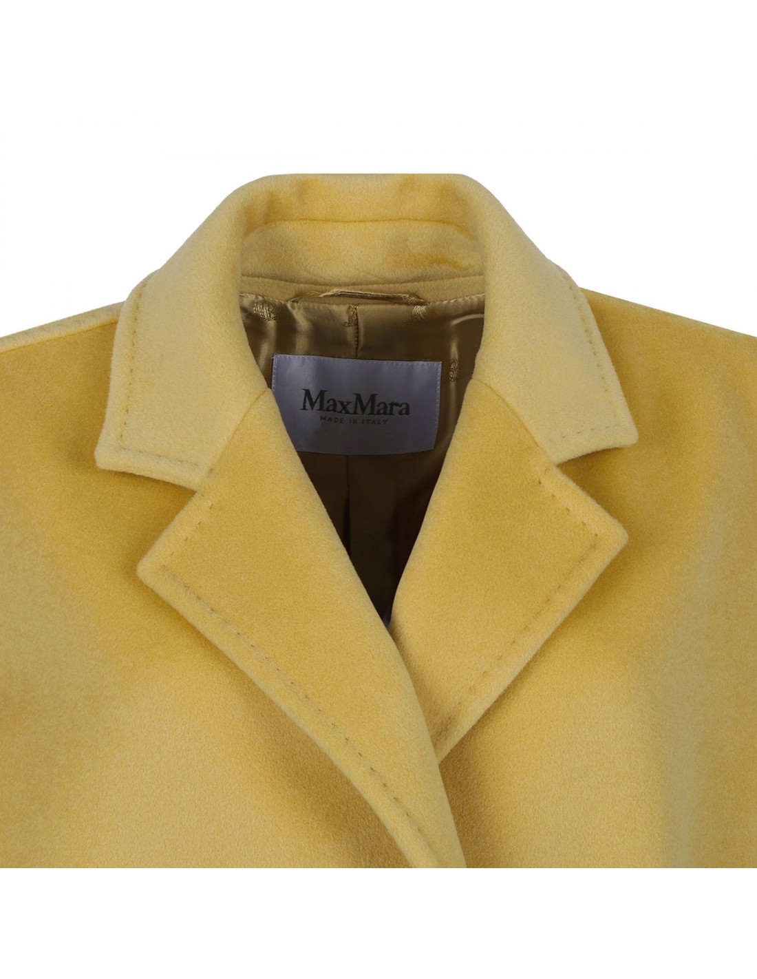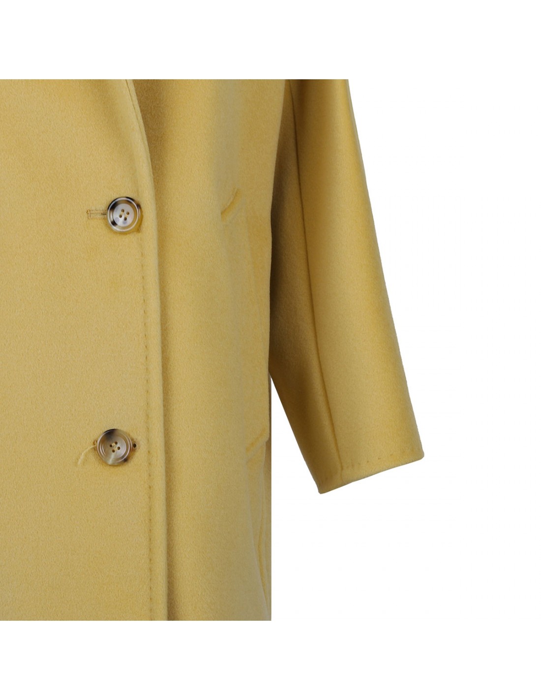 Caramel hue wool and cashmere beaver Iconic coat 101801 from Max Mara featuring above the knee length, oversize silhouette, lapel collar, fold-up kimono sleeves, side pockets, sartorial pick stitch finish, double-breasted design and button closure.