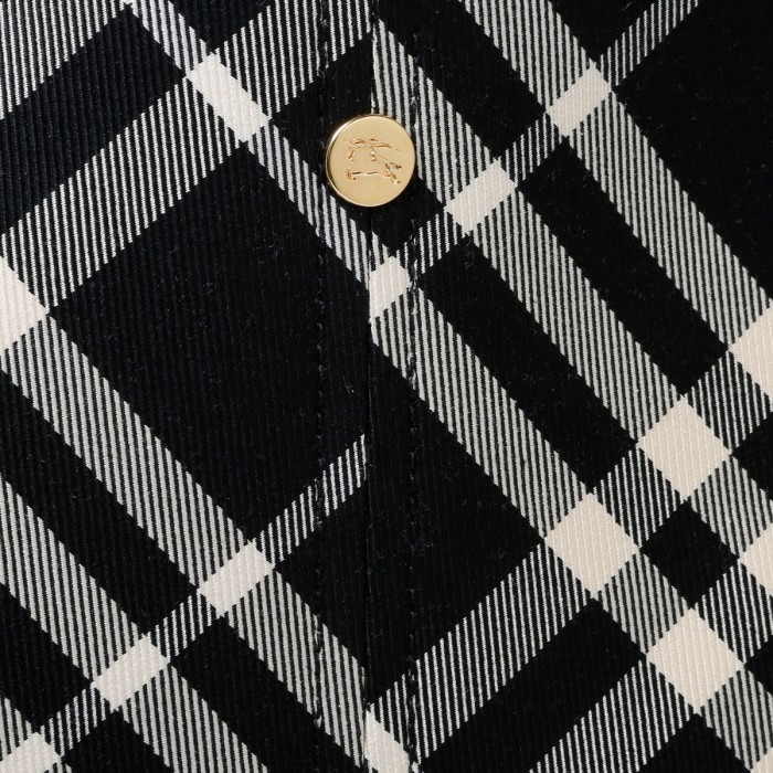 Black and chalk white cotton twill structured tote from Burberry featuring seasonal Burberry check, smooth calf leather trims, detachable zipped pouch, top handles, press-stud fastening, hand-painted edges.