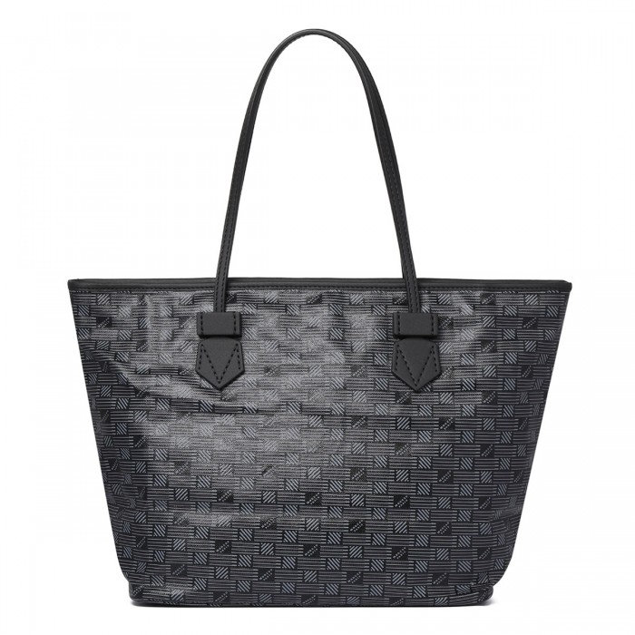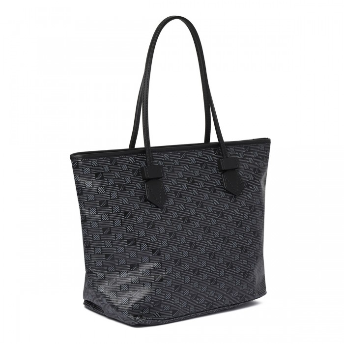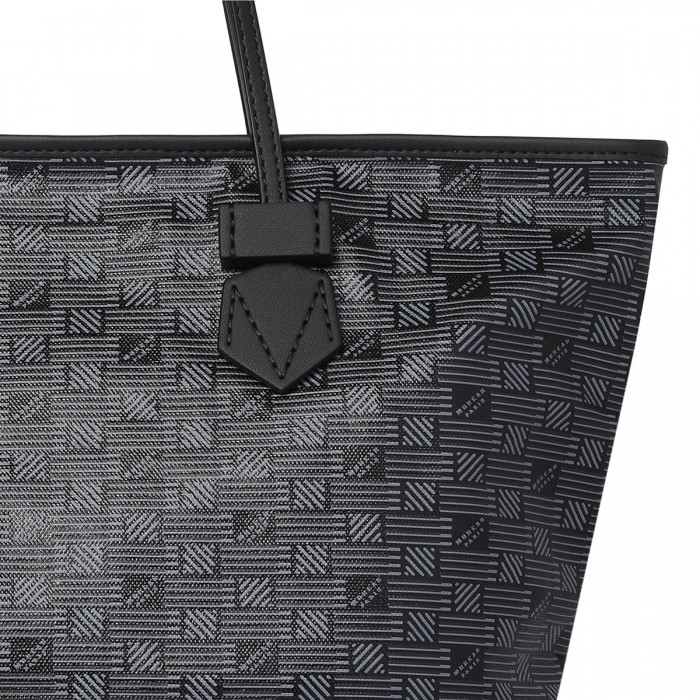 Black signature Moreaunette canvas Saint Tropez MM tote bag from Maison Moreau featuring tonal calfskin details, zip fastening, yacht-inspired chain fastening, long handles with hand-stitched details, canvas lining and internal waterproof pocket with zip.
