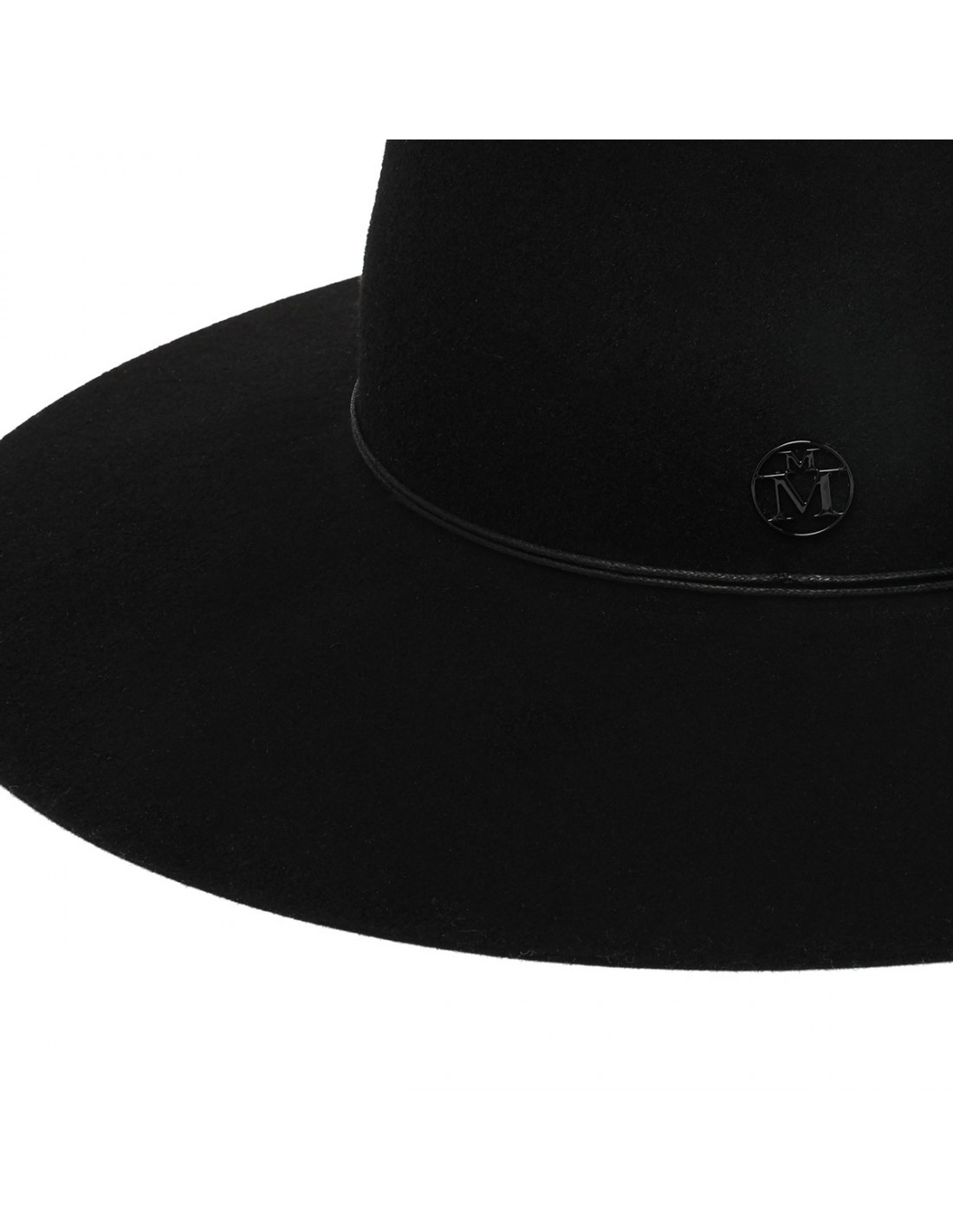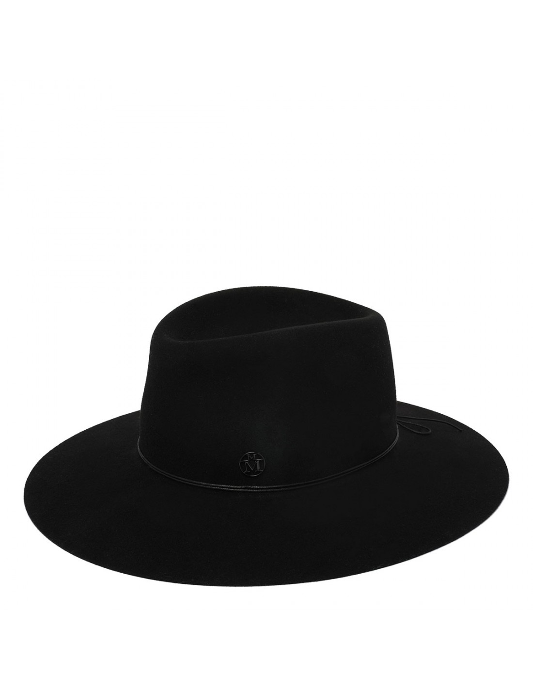 Black soft rabbit felt Charles fedora hat from Maison Michel featuring black cord, tonal monogram Maison Michel logo.