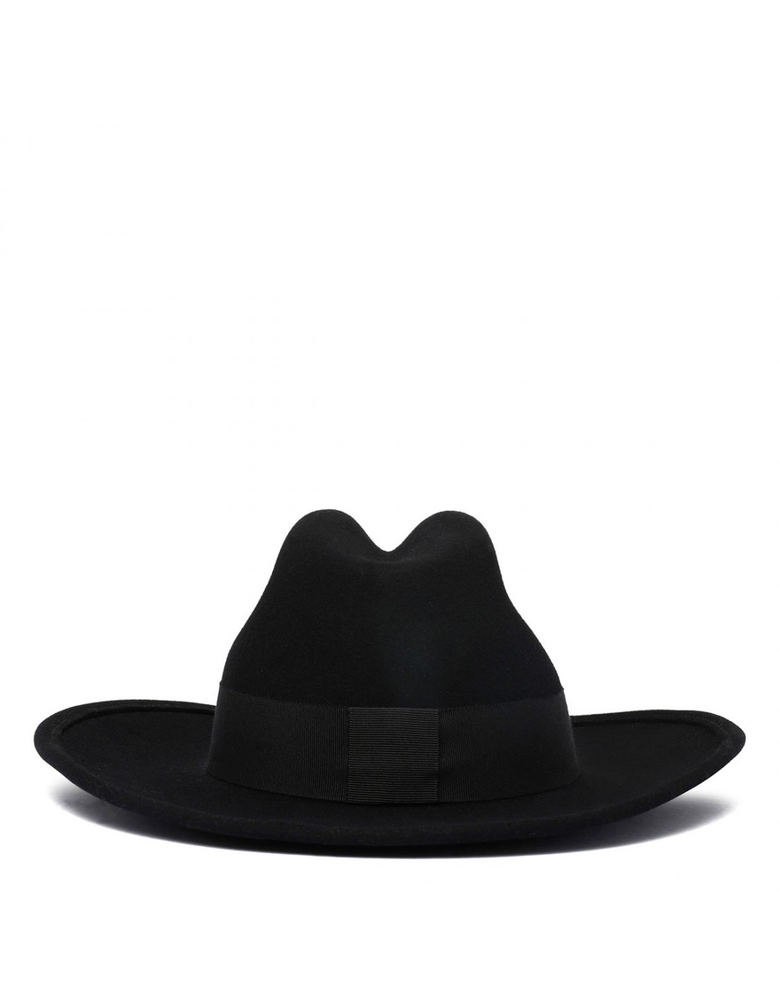 Black rabbit felt Austin cowboy hat from Maison Michel featuring Western style, waterproof treatment, black gros-grain band, tonal monogram Maison Michel logo.