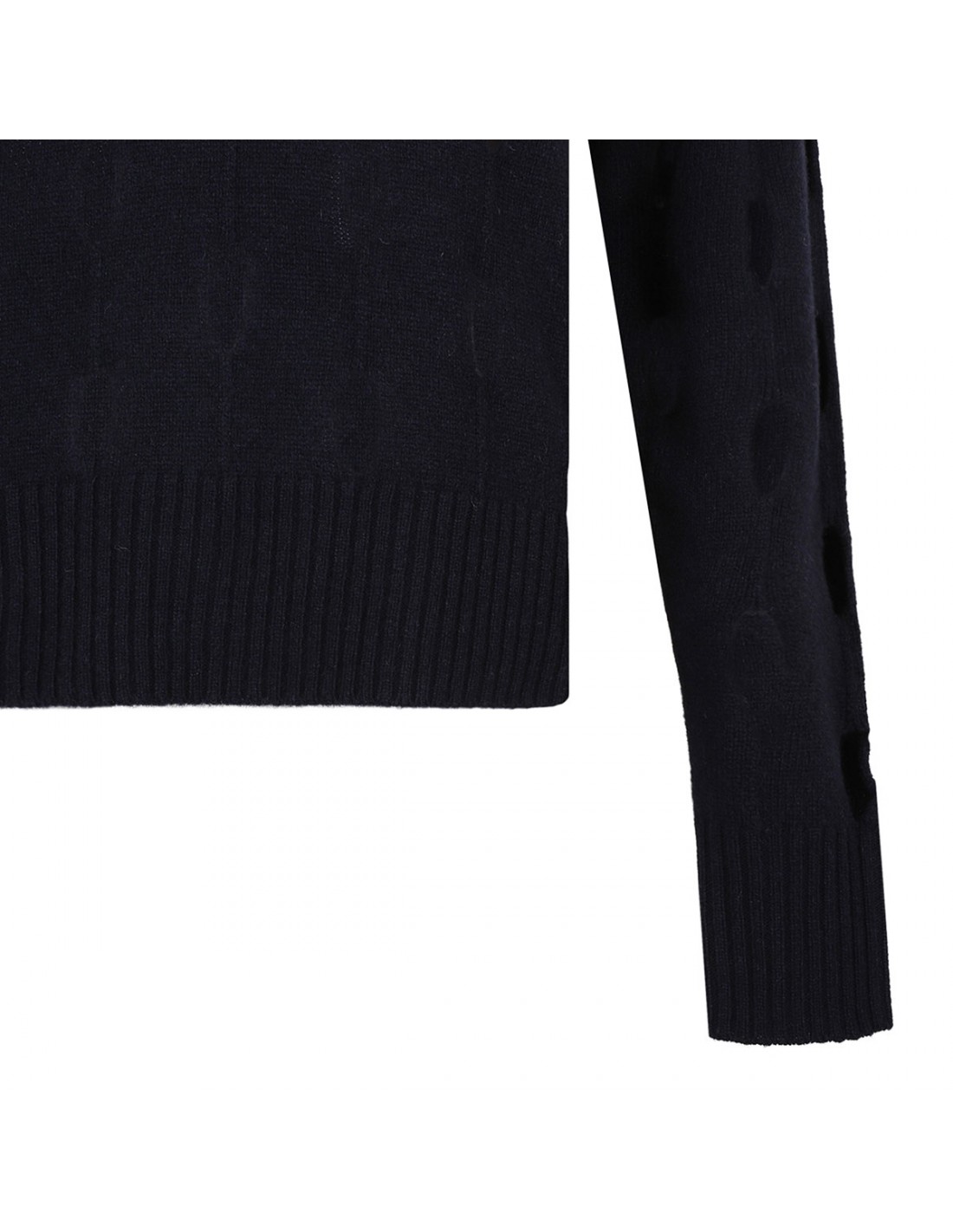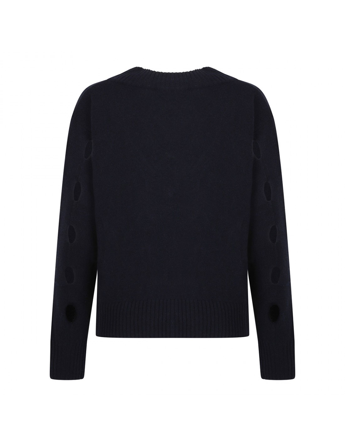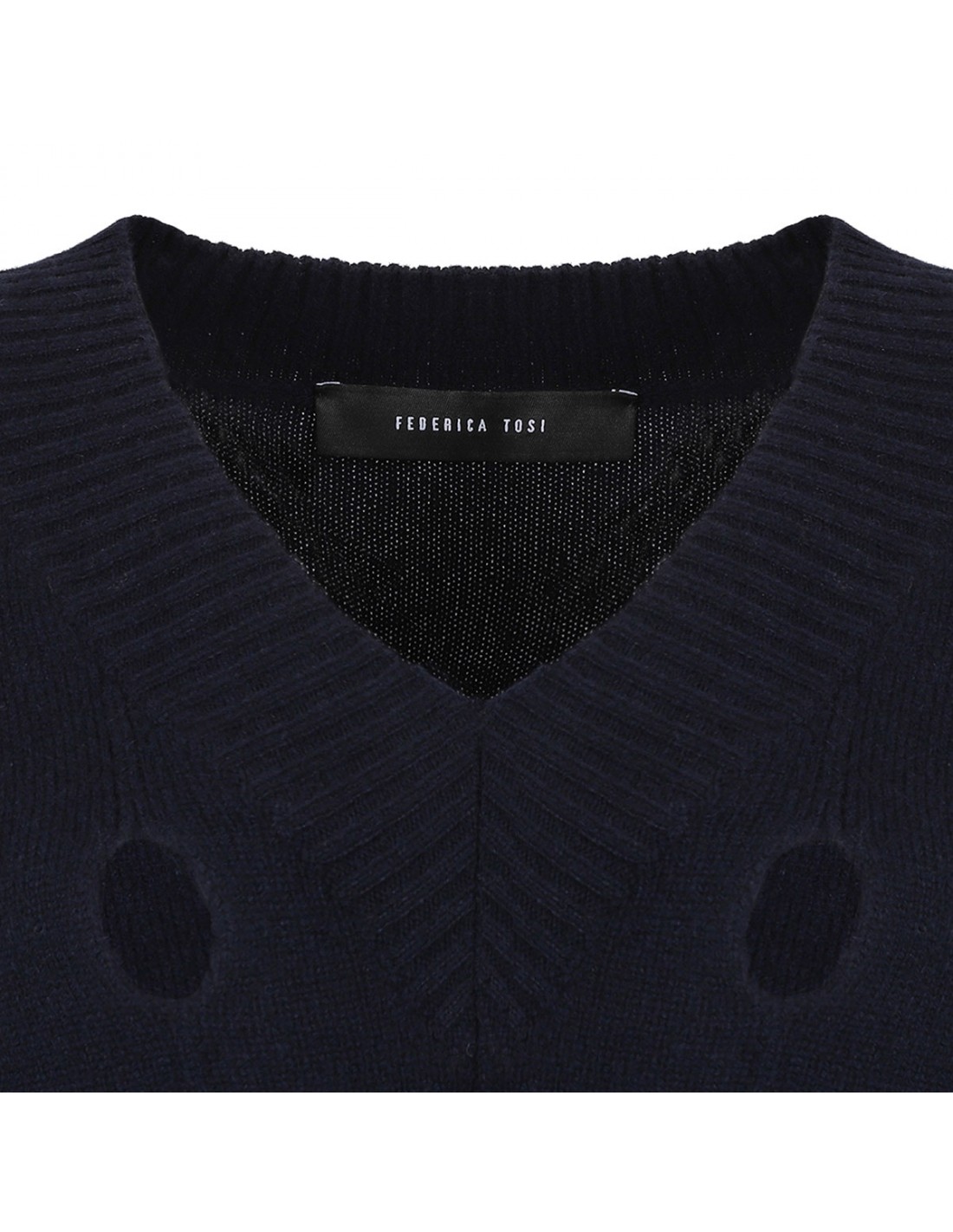 Blue wool sweater from Federica Tosi featuring perforated details, V neck, long sleeves, ribbed-knit edges.