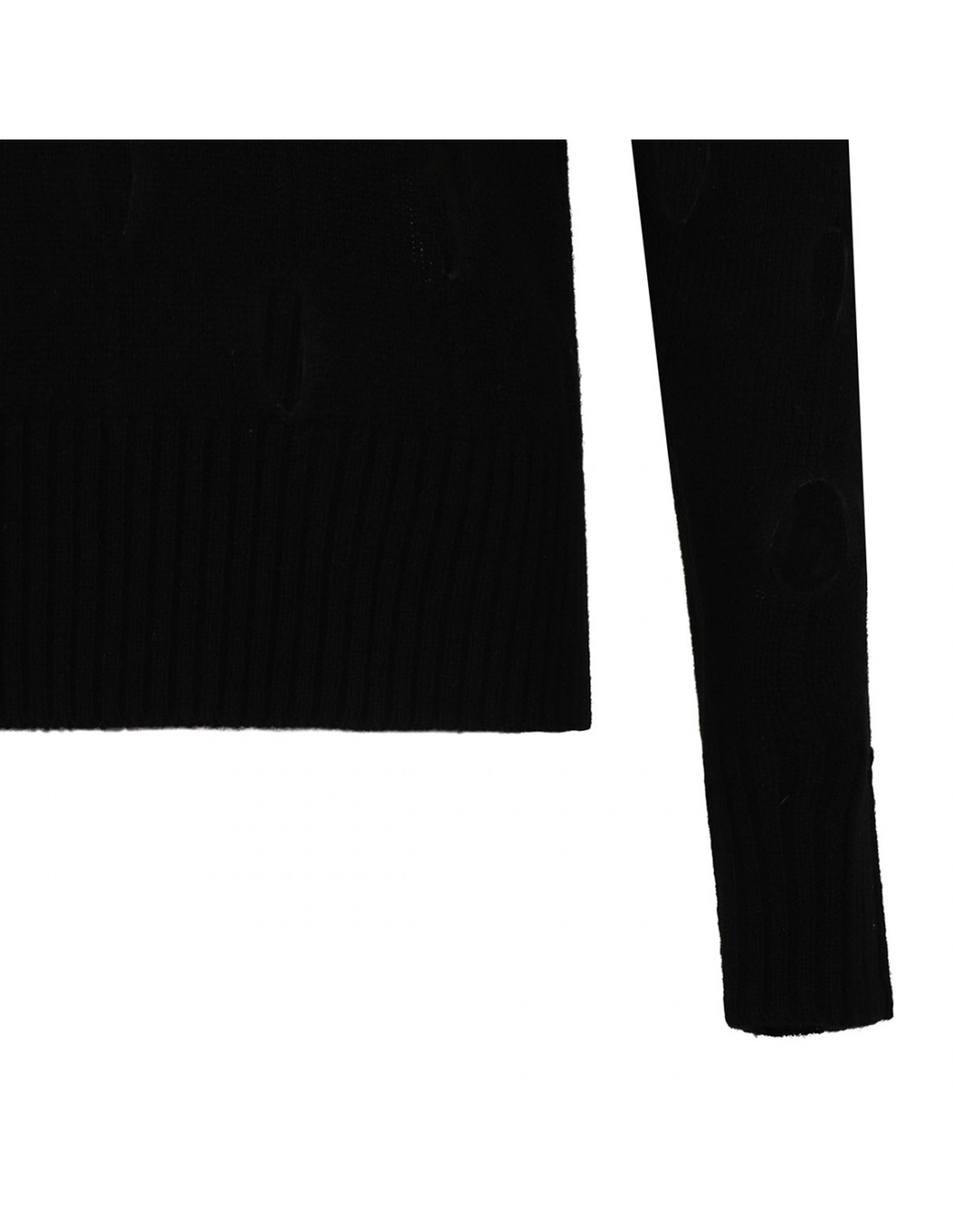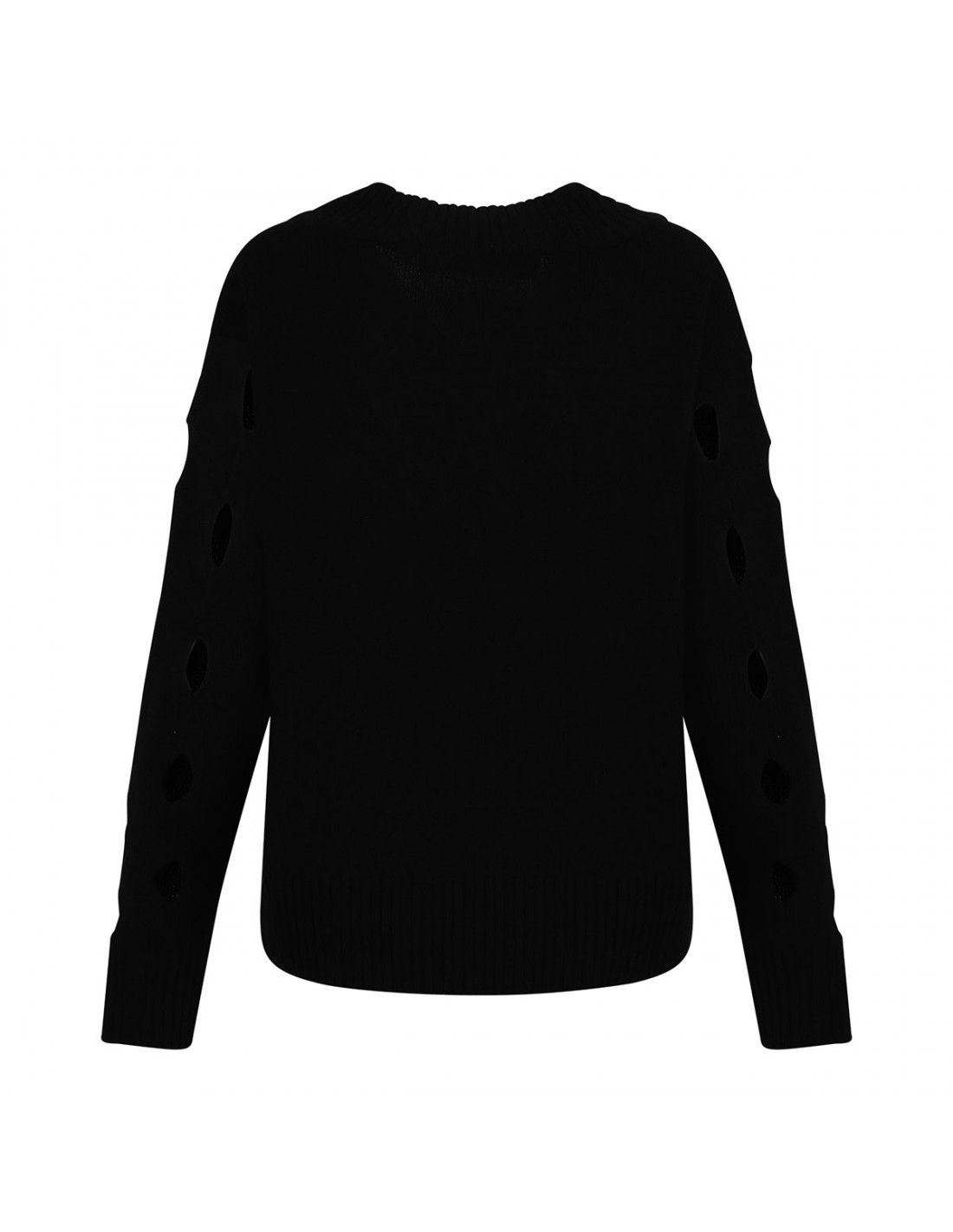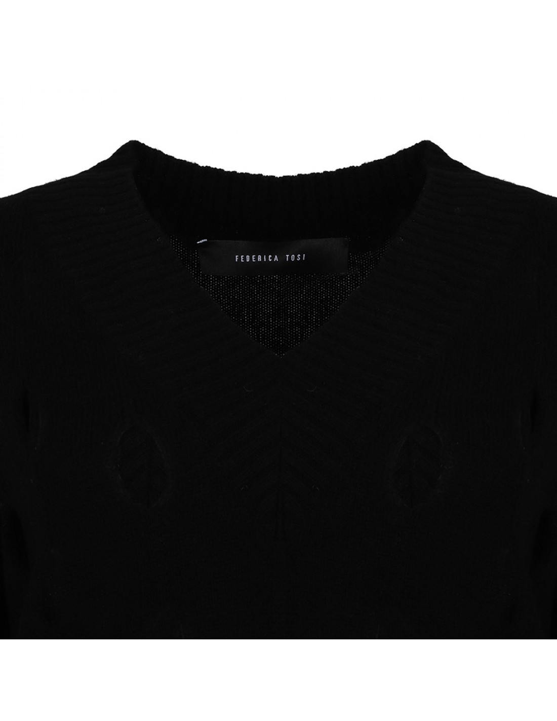 Black wool sweater from Federica Tosi featuring perforated details, V neck, long sleeves, ribbed-knit edges.
