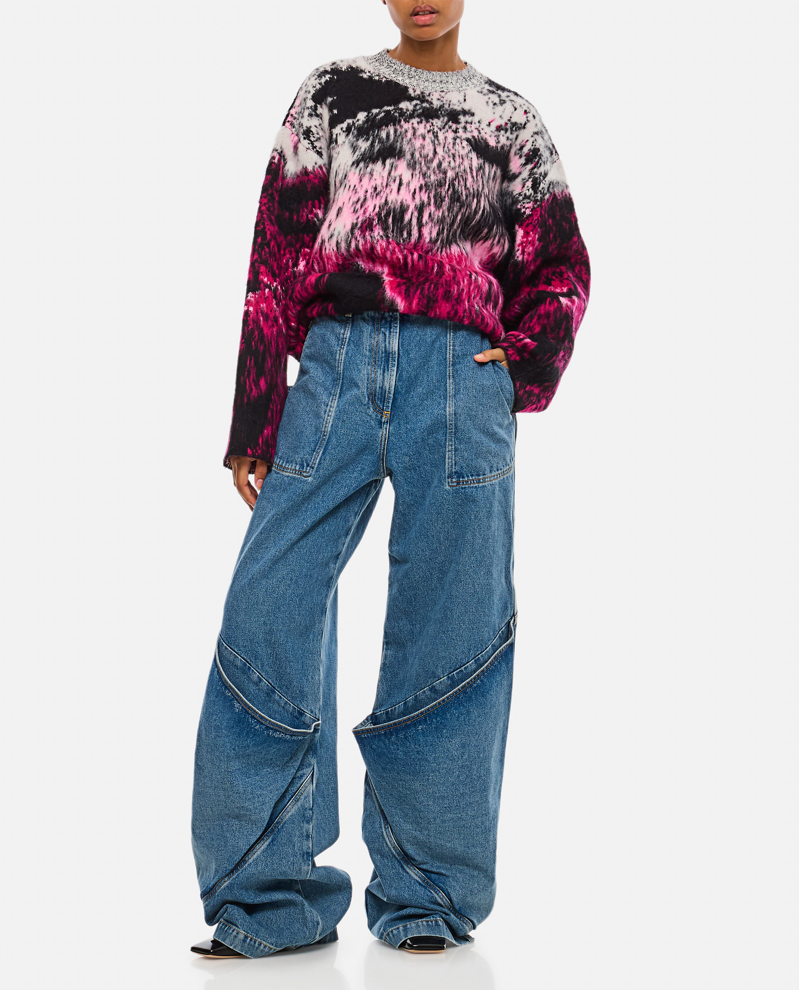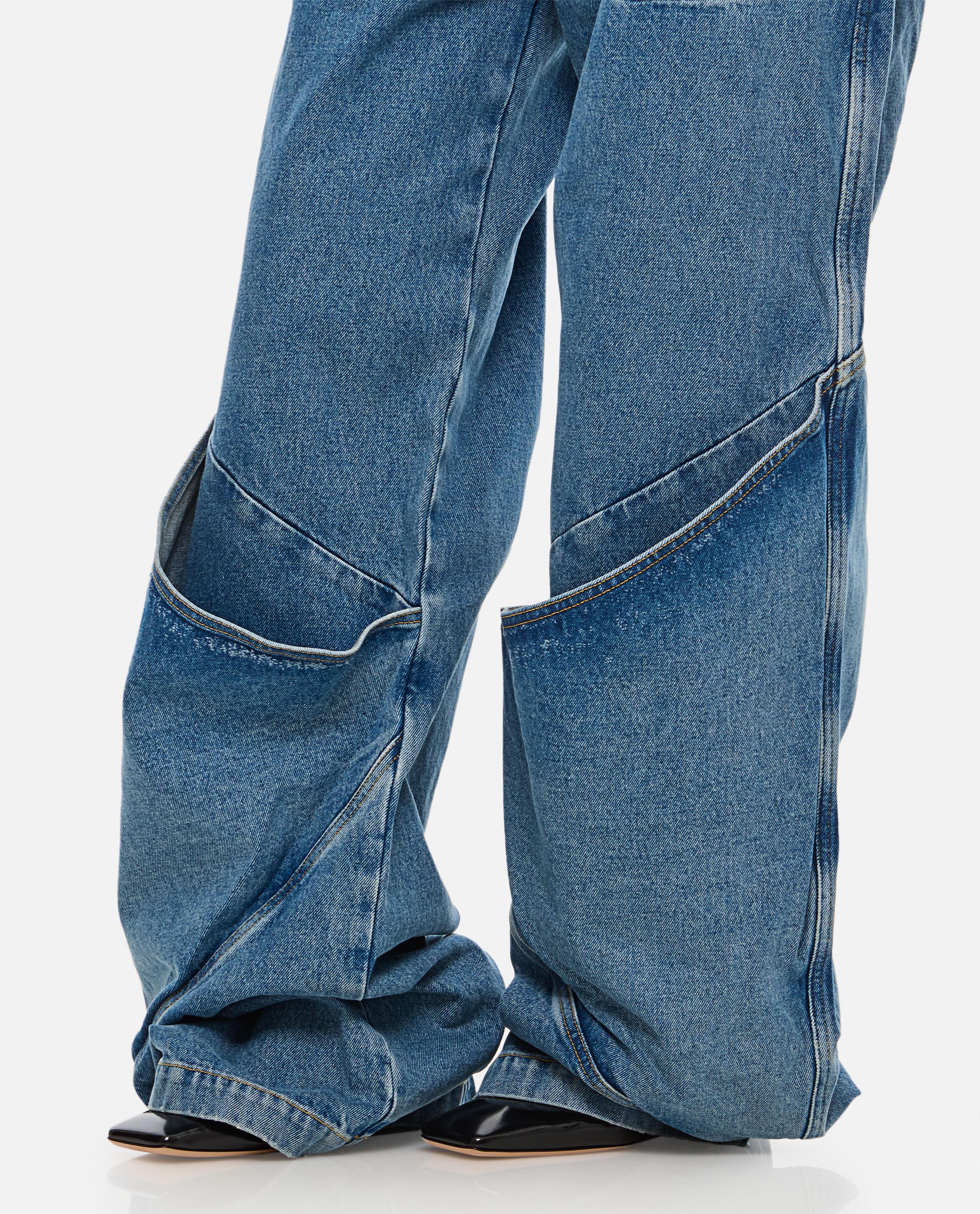Front zipper and button closure.Waist with belt loops.Low waist.Five pockets.Cut out detail.Wide leg.Color: blue.