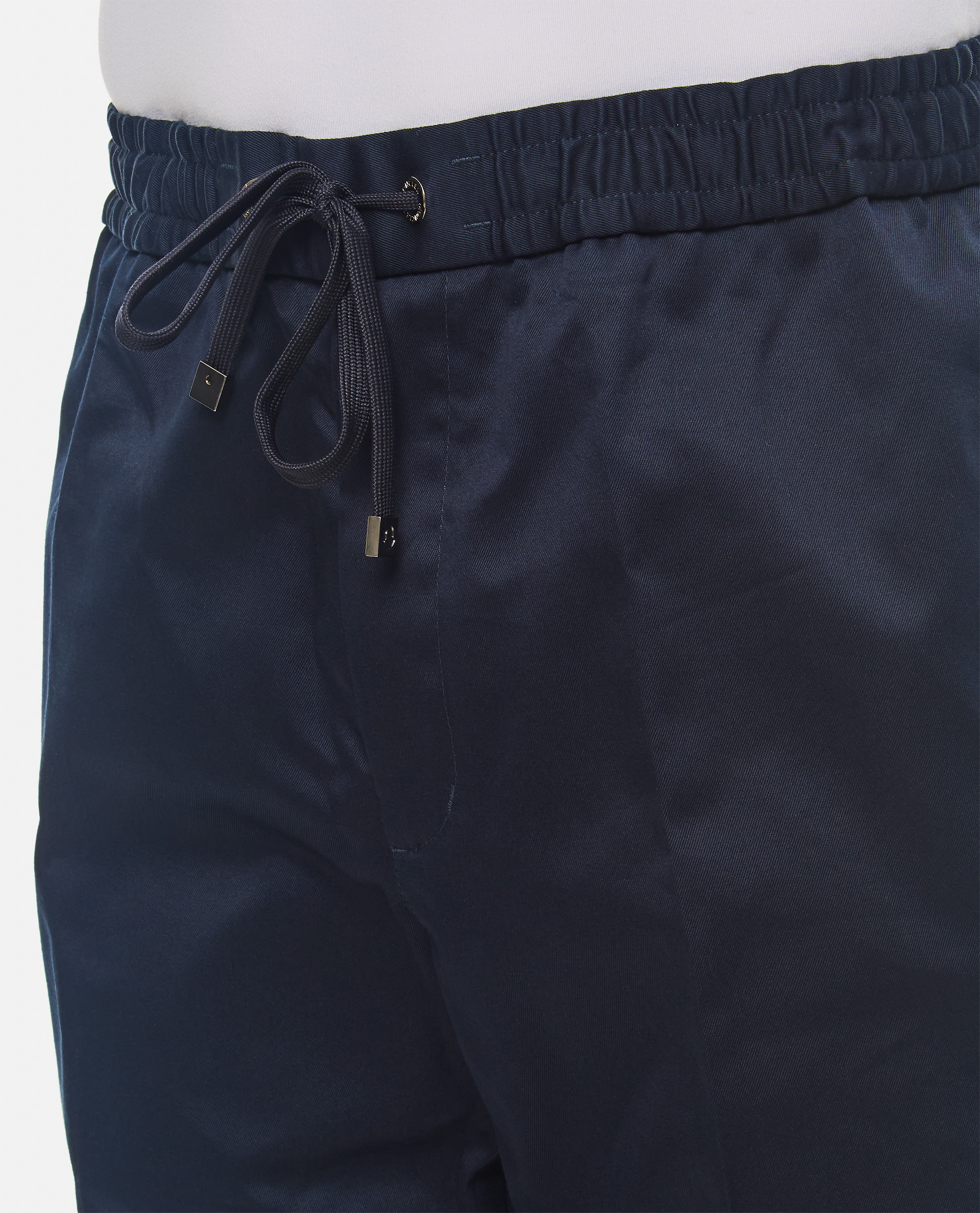 Elasticated waist with drawstrings. Frontal pleats. Side pockets. Color: blue.