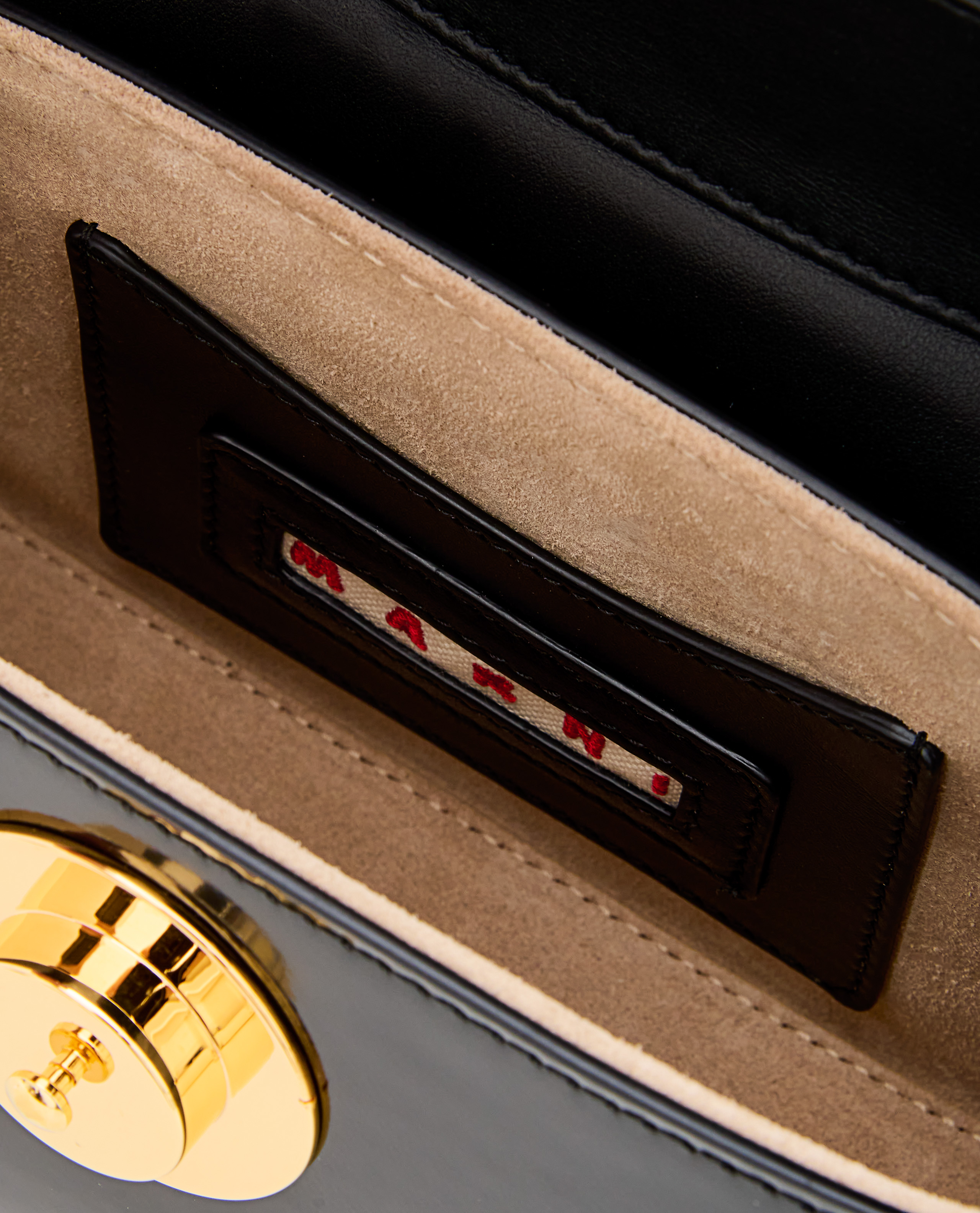 Hard lock bag with gold jewel.Shoulder strap.In patent leather.Color: black