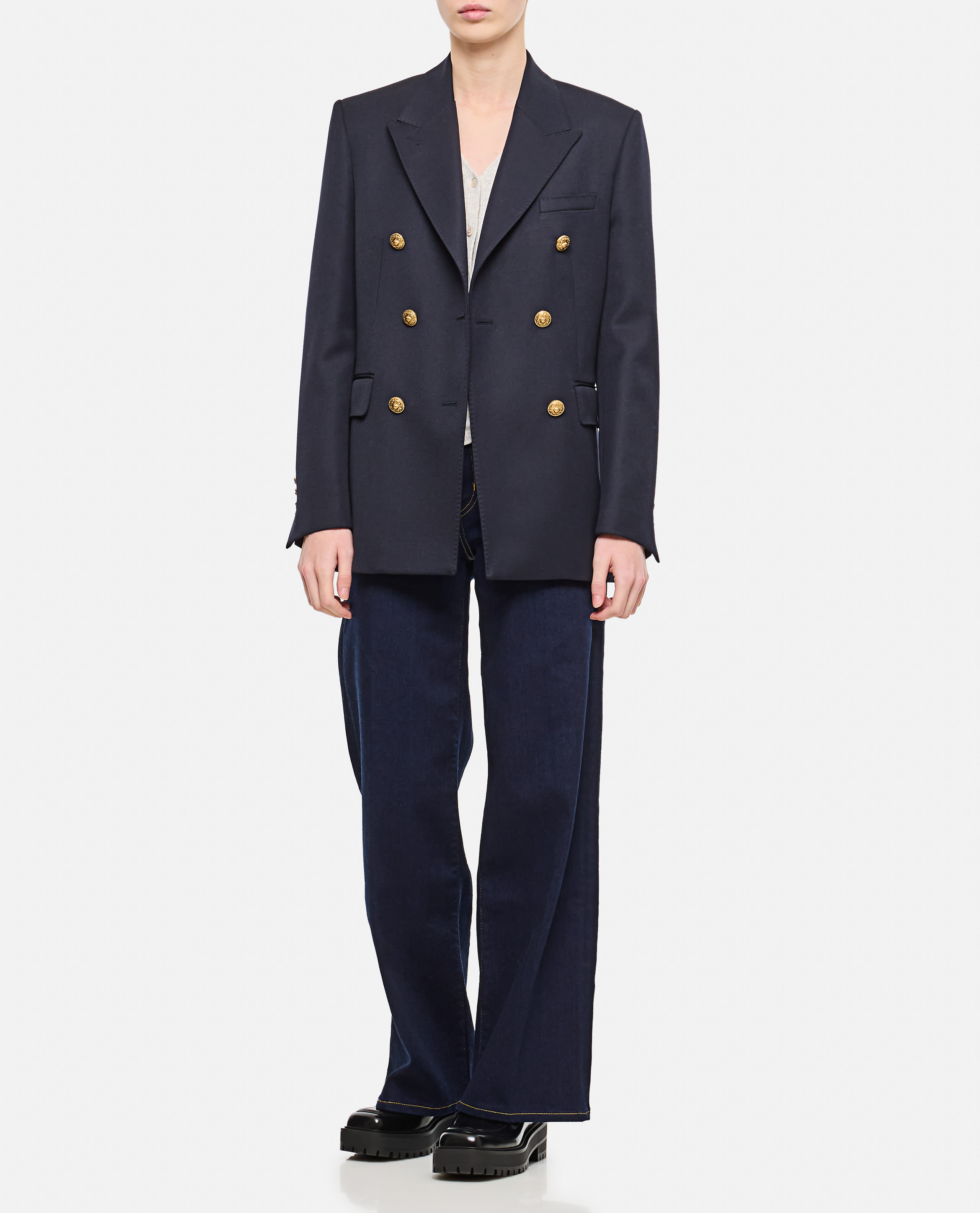 Double-breasted model.Double gold star on the back.Three front pockets.Long sleeves.Gold heraldic button closure.Color: blue.