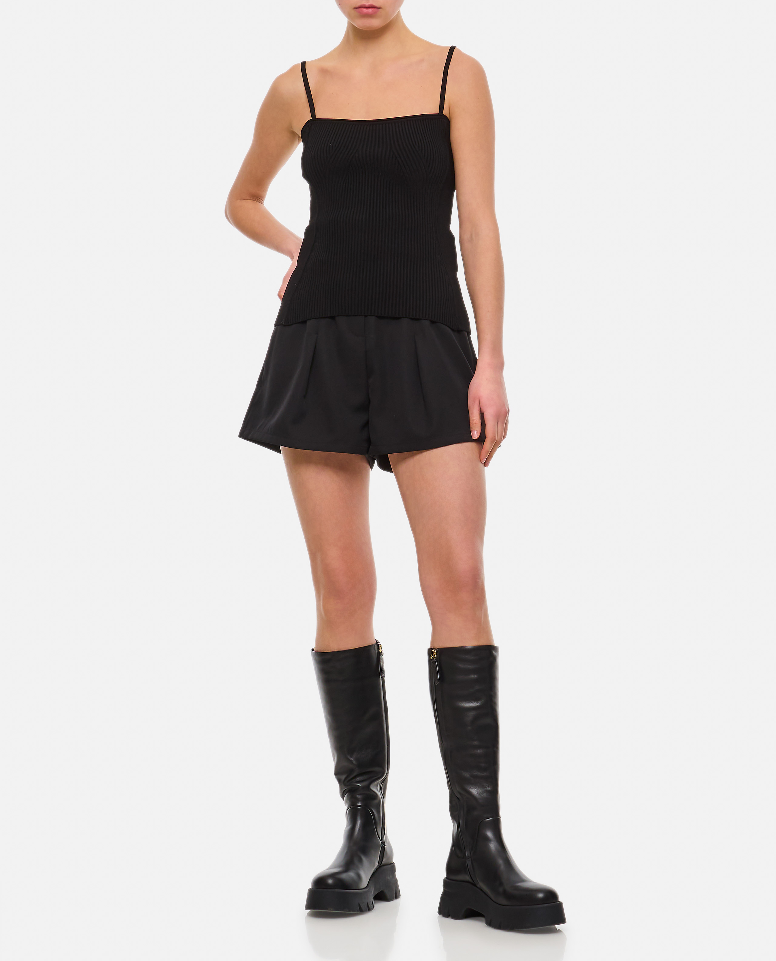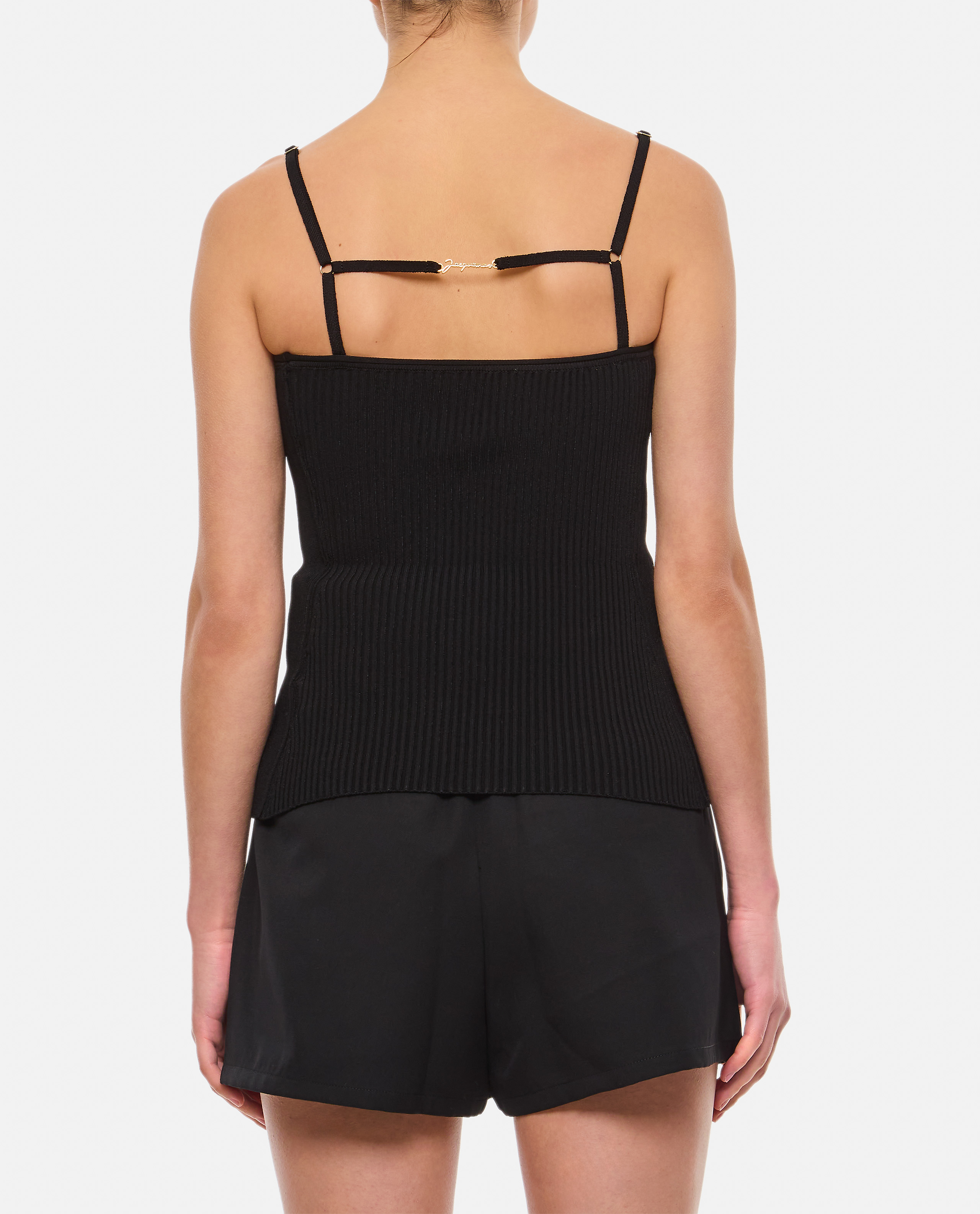 Ribbed panelling.Gold-tone hardware.Spaghetti straps.Square neck.Straight hem.Color: black.