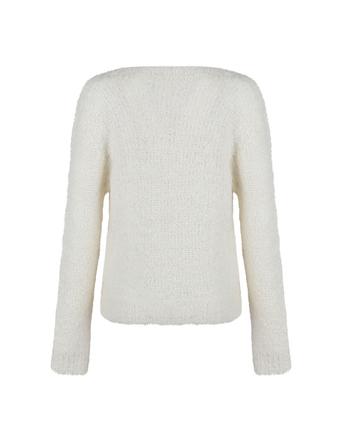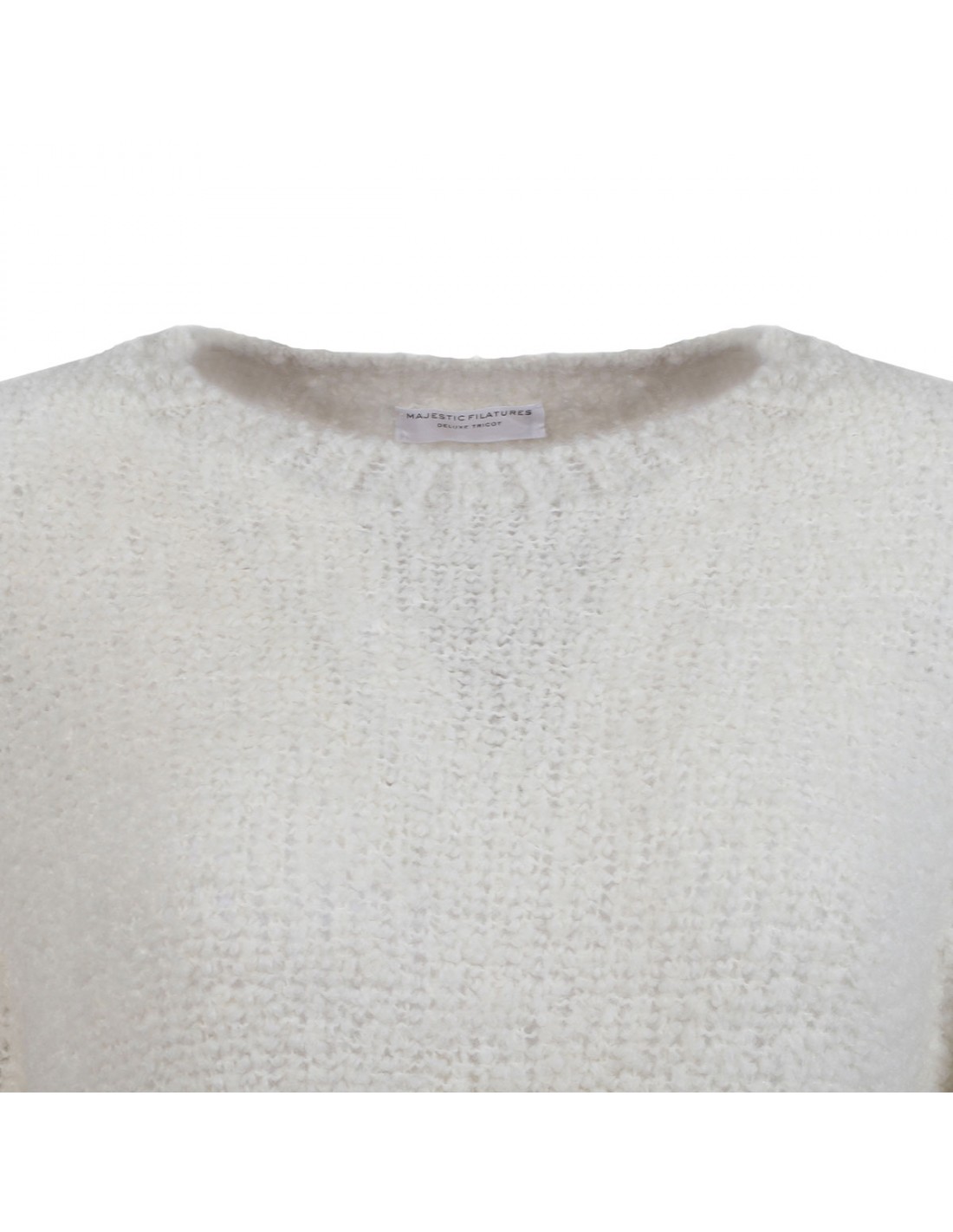 Mother of pearl white alpaca blend fluffy sweater from Majestic featuring crew collar, long sleeves, crew collar, long sleeves and ribbed-knit edges.
