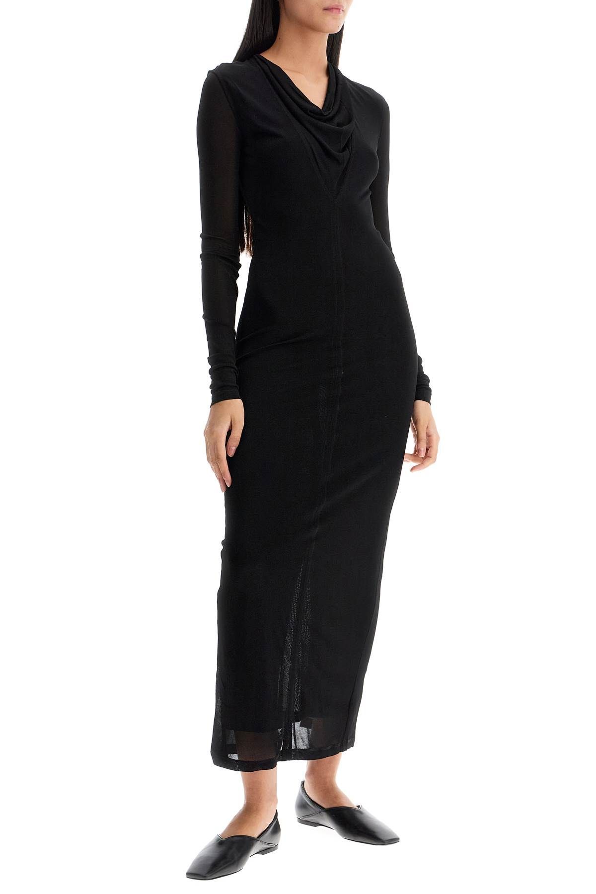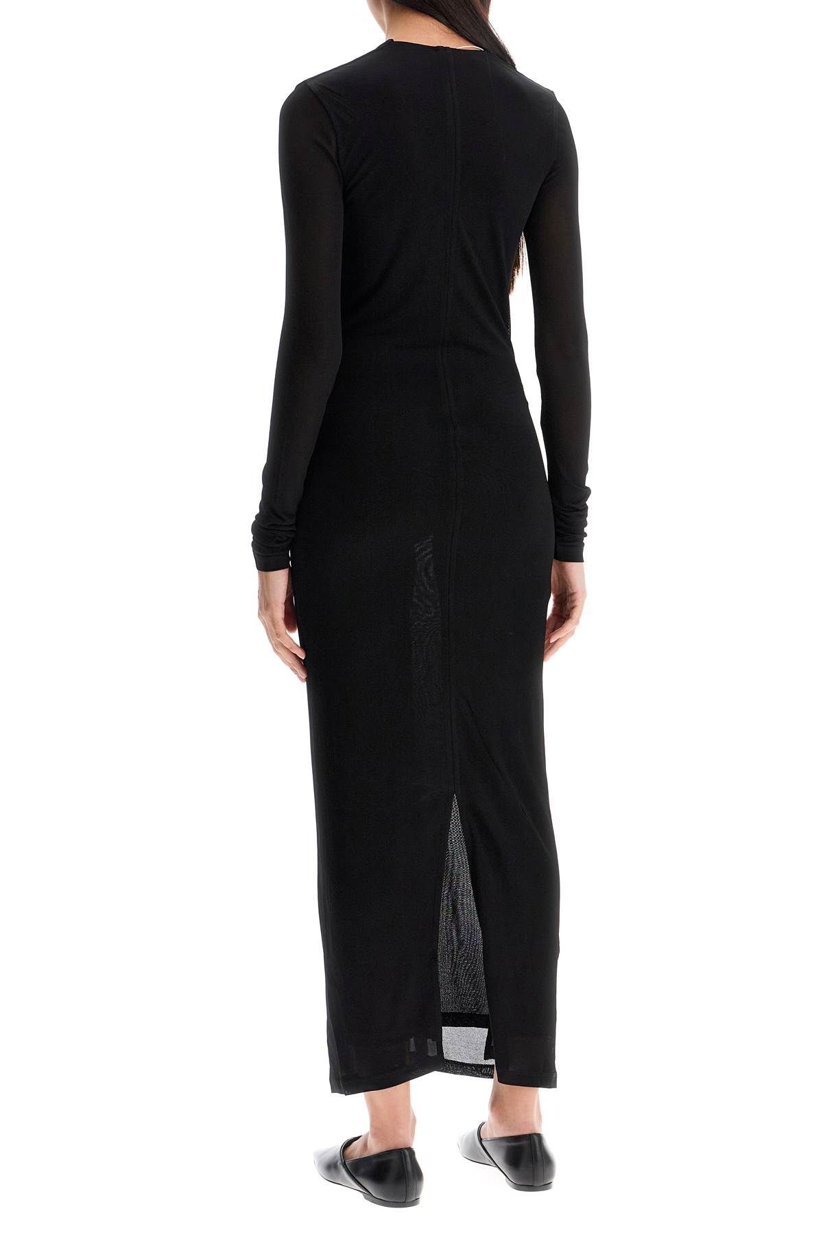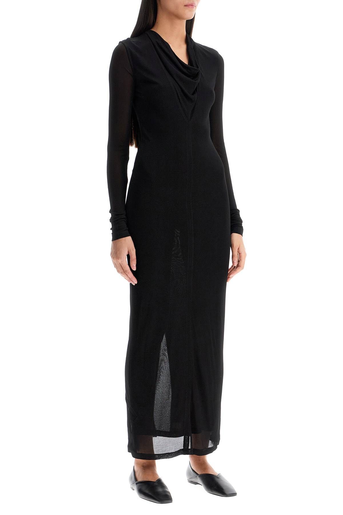 This Totême long dress features a column silhouette with long sleeves and a draped V-neck insert