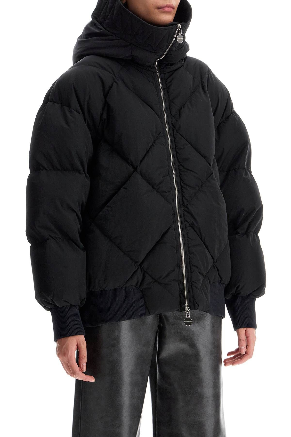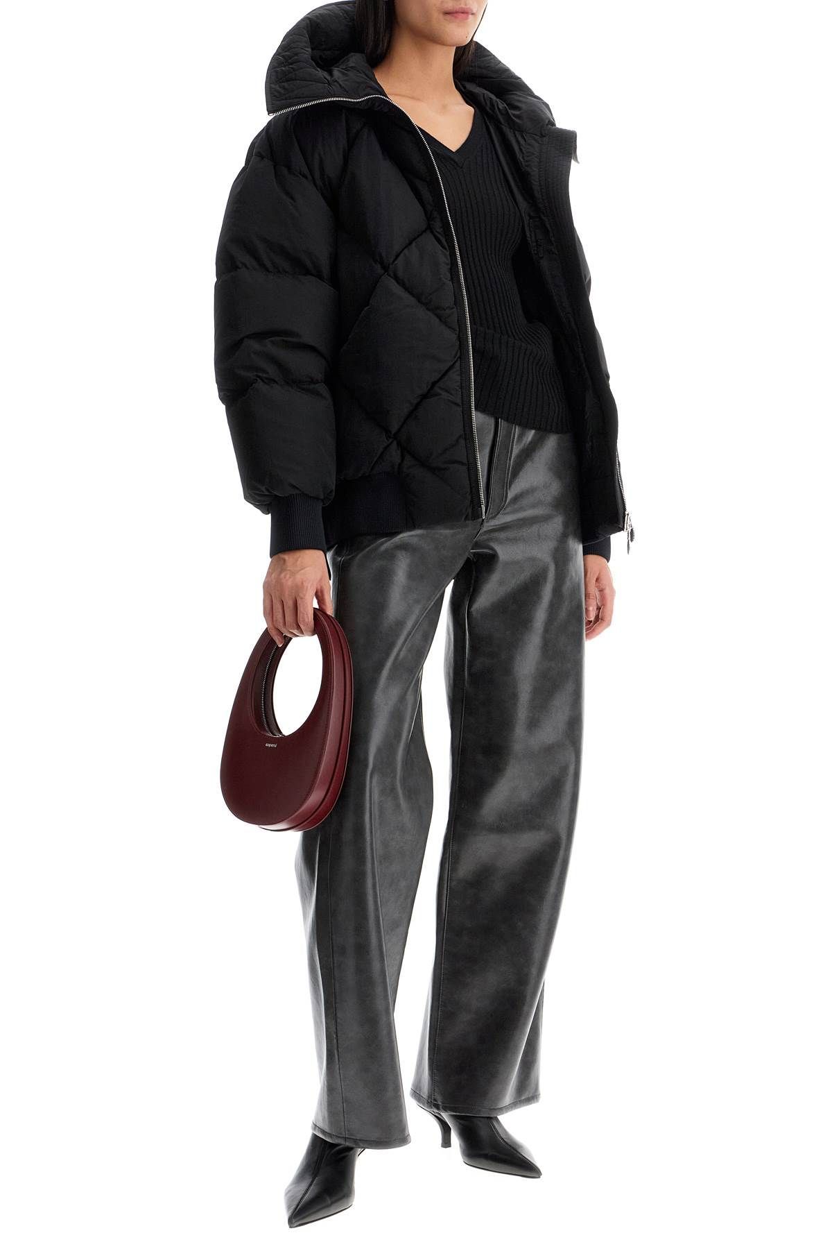 The Ienki Ienki short jacket is made of nylon and filled with feathers, featuring a mixed quilted pattern and ribbed finishes on the cuffs and hem