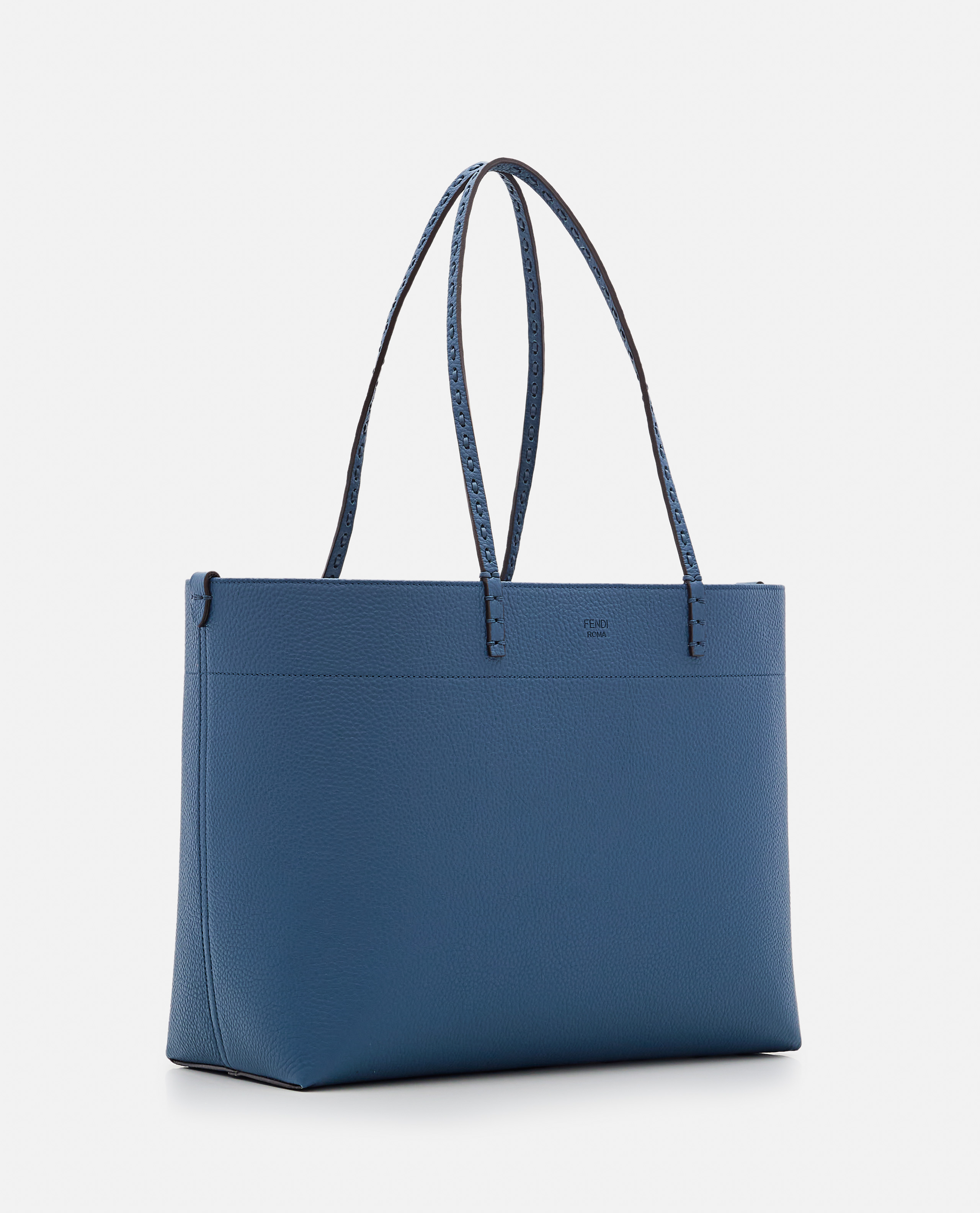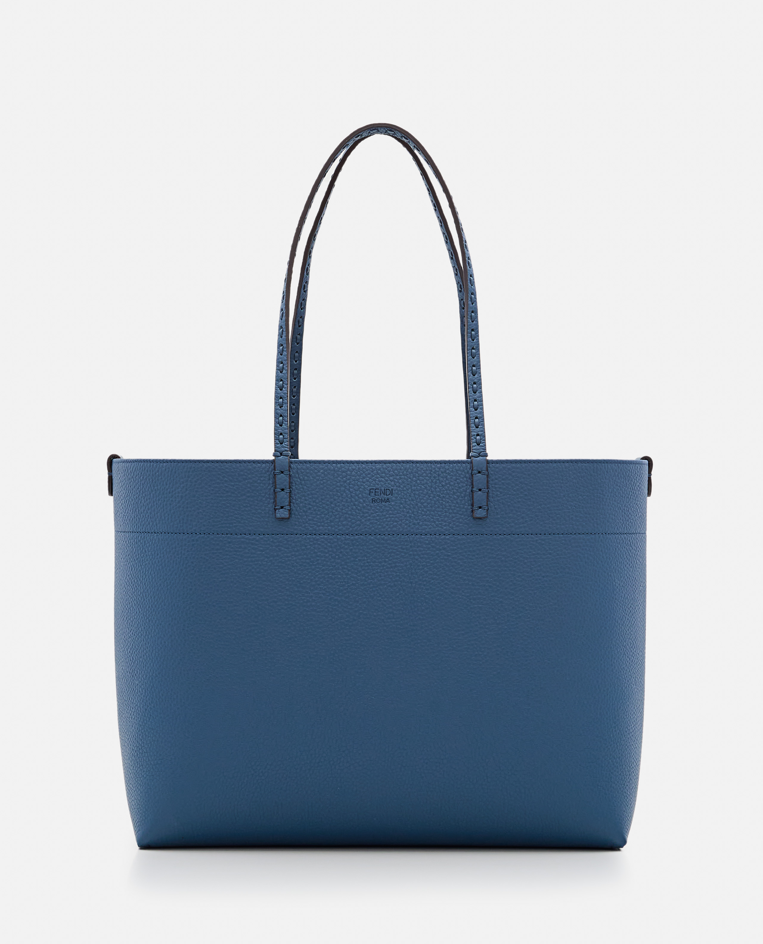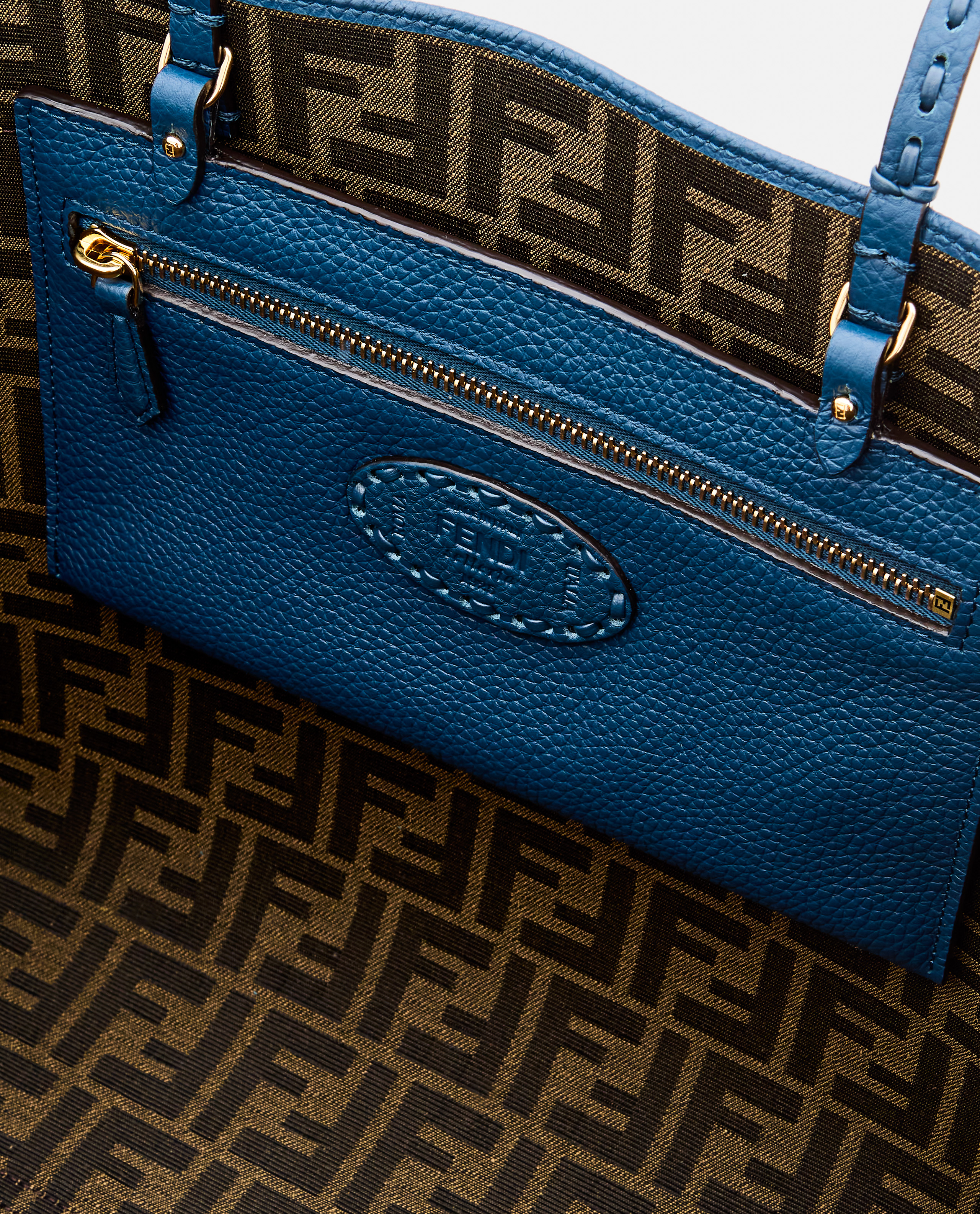 Featuring carry-all functionality and without Featuring a reversible design.Features a removable inner zipper pocket in beige leather.Metal hardware with gold finish.It can be carried by hand or on the shoulder thanks to the leather handles, finished with handmade stitching.Color:blue.