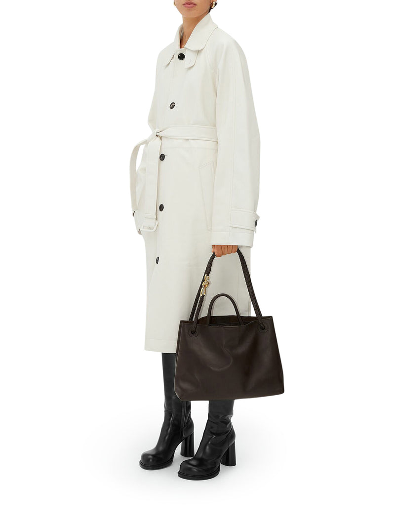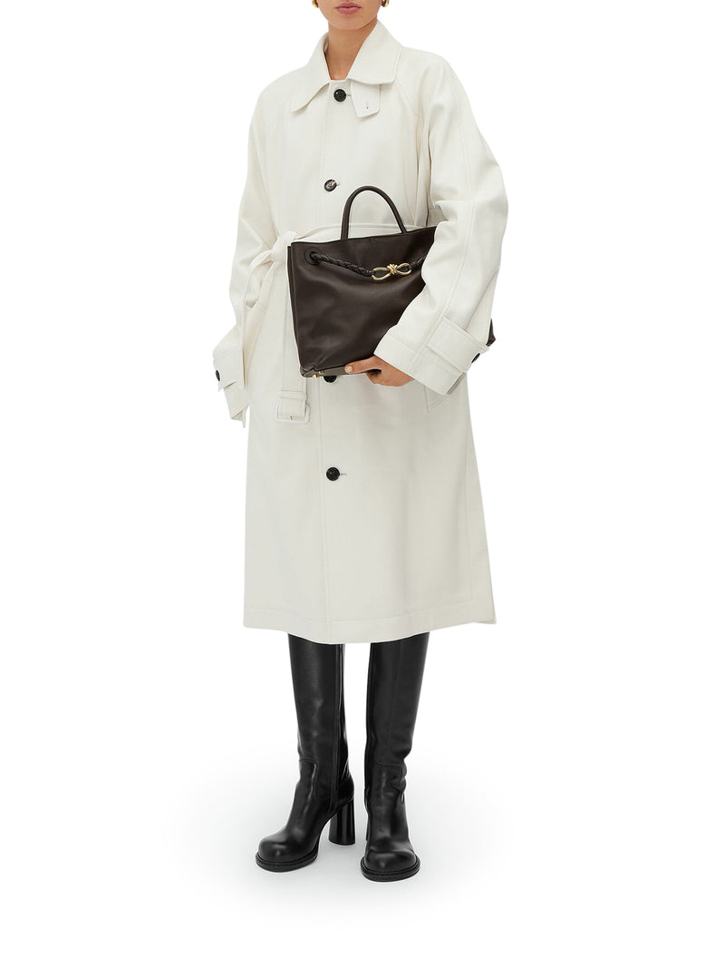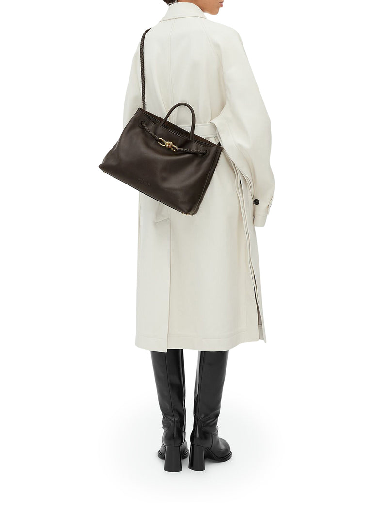 - Medium bag in soft calfskin with handle and sliding cross-body shoulder strap - Internal leather pocket with Intrecciato motif - Magnetic closure - Material: calfskin - Interior: suede - Color: Fondant - Metal accessories: brass finish - Height: 25 cm - Width: 32 cm - Depth: 11 cm - Handle drop: 9 cm - Shoulder strap drop: 45 cm
