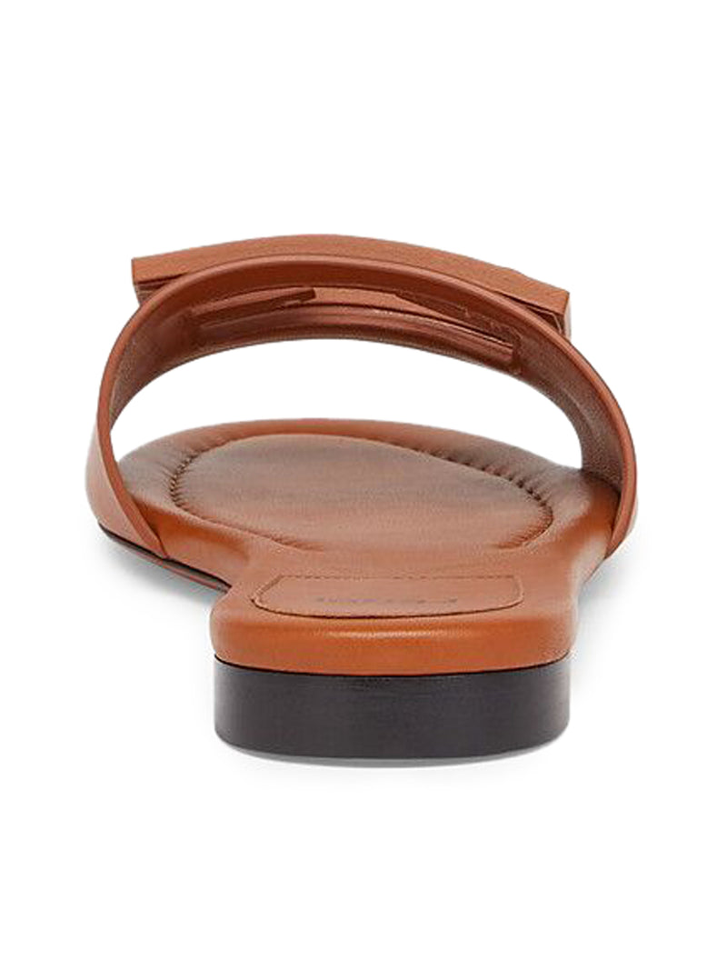 -Slide with wide band -Made of brown leather -Finished with tone-on-tone leather FF Baguette motif