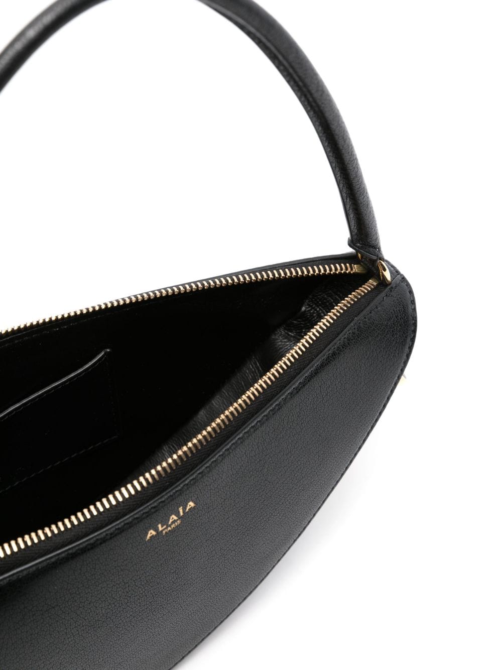 black goatskin grained texture logo stamp to the front padlock detail top zip fastening single rolled top handle leather lining internal card slot main compartment gold-tone hardware
