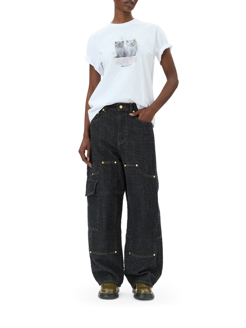 > RELAXING 티셔츠 위드 CATS IN 베이직 화이트 져지