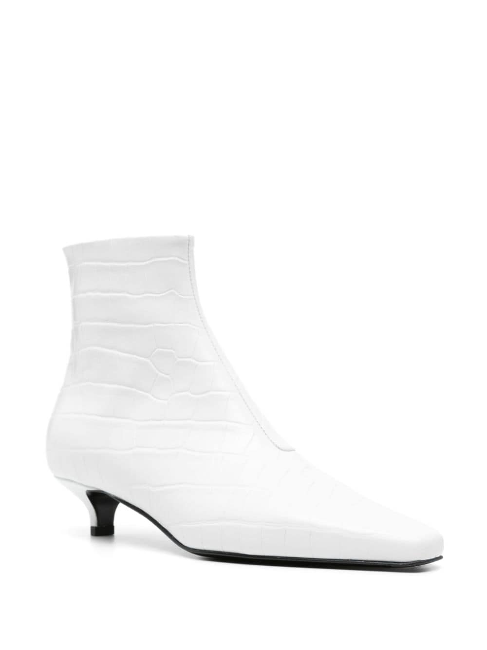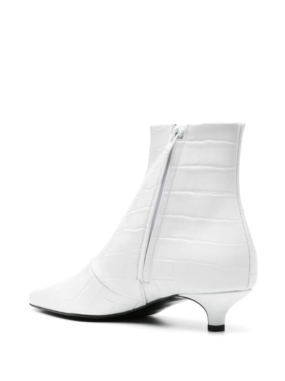 white calf leather embossed crocodile effect square toe side zip fastening branded leather insole kitten heel leather sole ankle-length This piece comes complete with a protective dust bag.