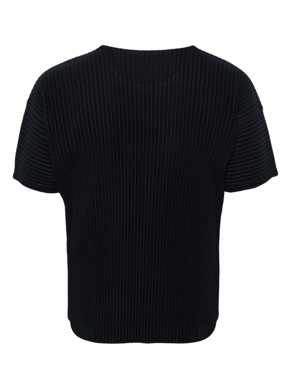 navy blue fully pleated plisse effect round neck short sleeves straight hem