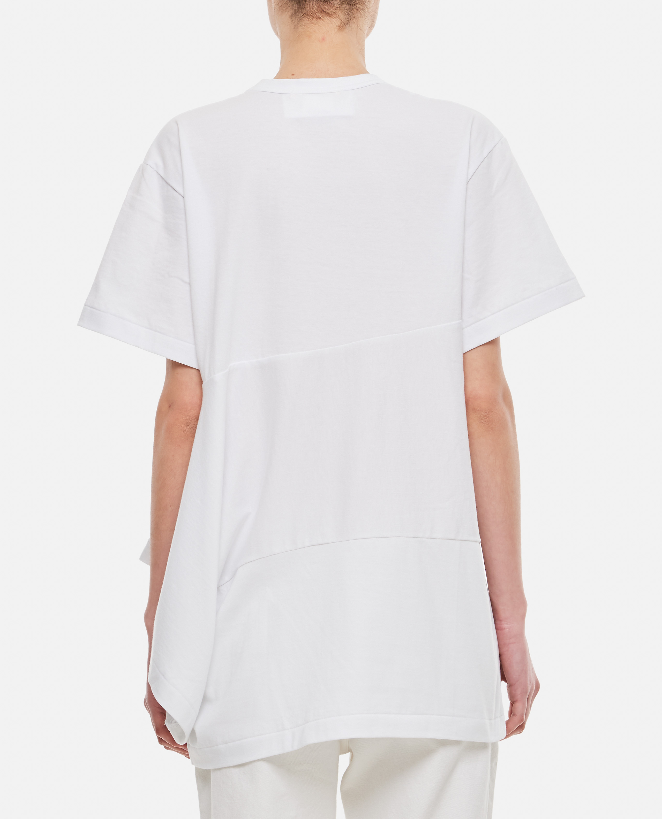 Round neckline.Short sleeves.Waist application with draping.Regular fit.Color: white.