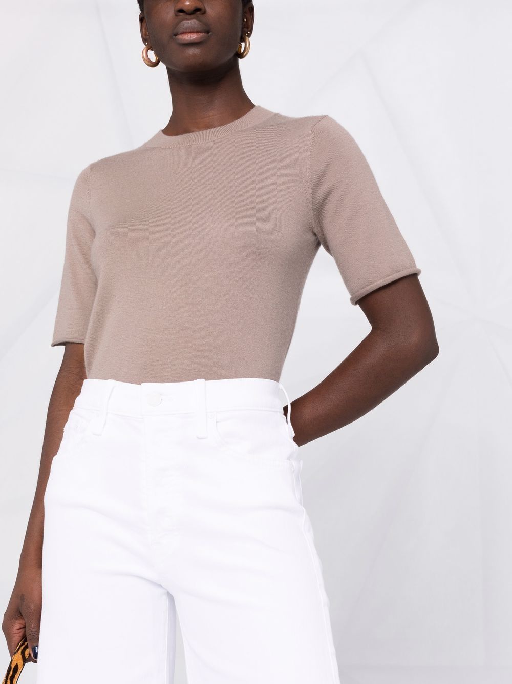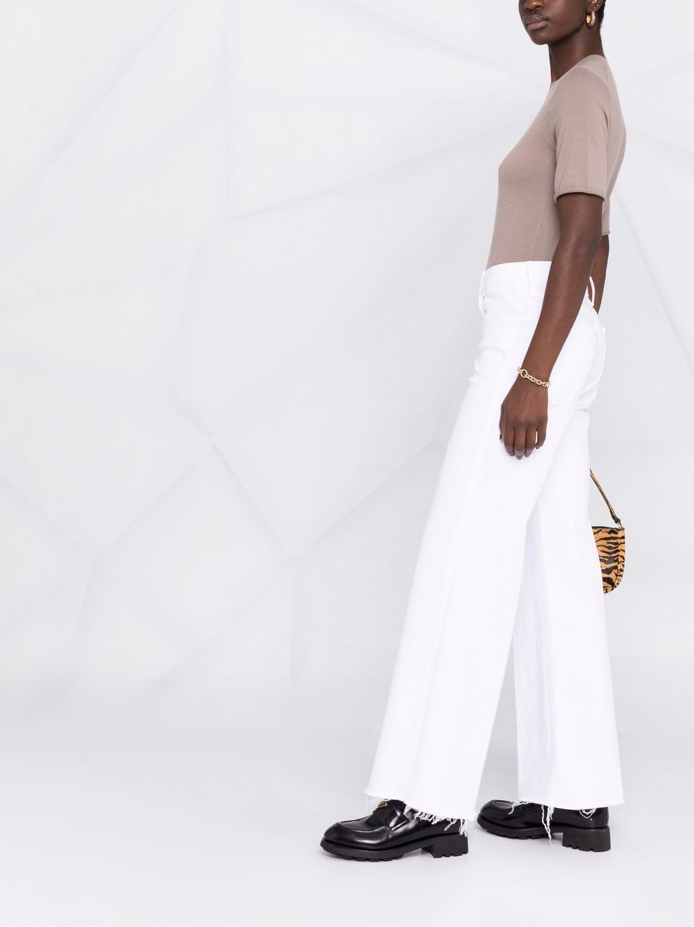 White stretch cotton high-rise straight-leg jeans from MOTHER featuring high waist, belt loops, front button and zip fastening, classic five pockets, straight leg, wide leg and raw edge.