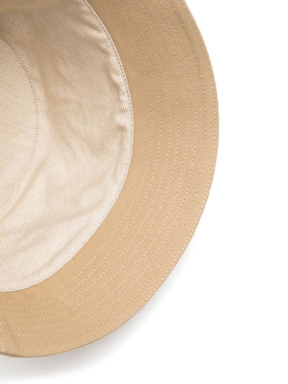 sand beige cotton/canvas flat crown logo patch to the front dropped narrow brim full lining This piece comes complete with a protective dust bag.