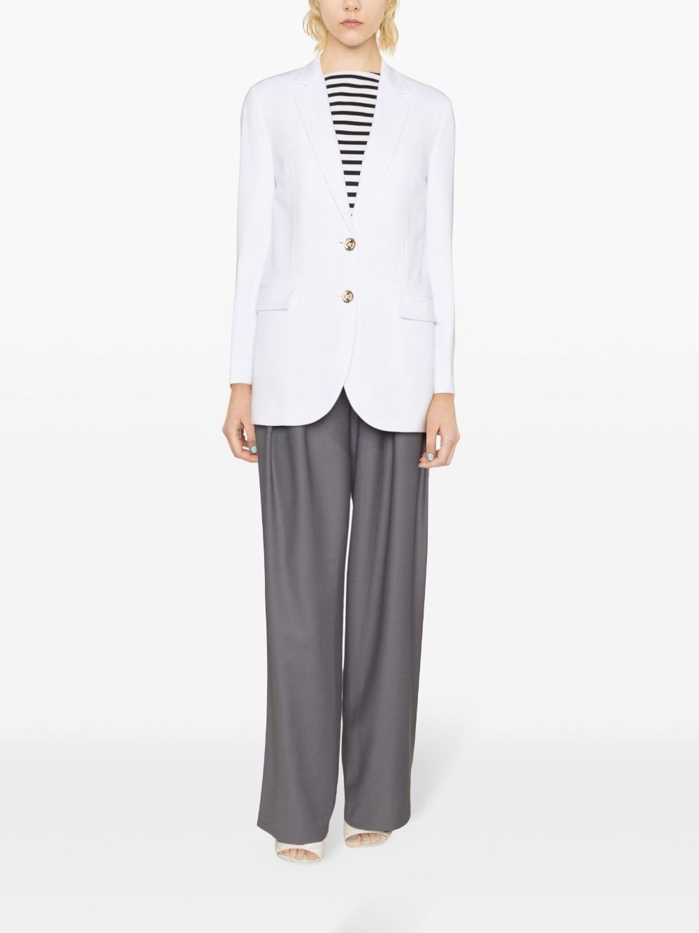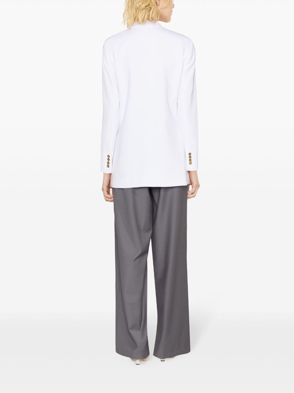 white crepe texture notched lapels front button fastening logo-debossed buttons long sleeves buttoned cuffs chest welt pocket two front flap pockets logo-jacquard lining internal slip pocket straight hem