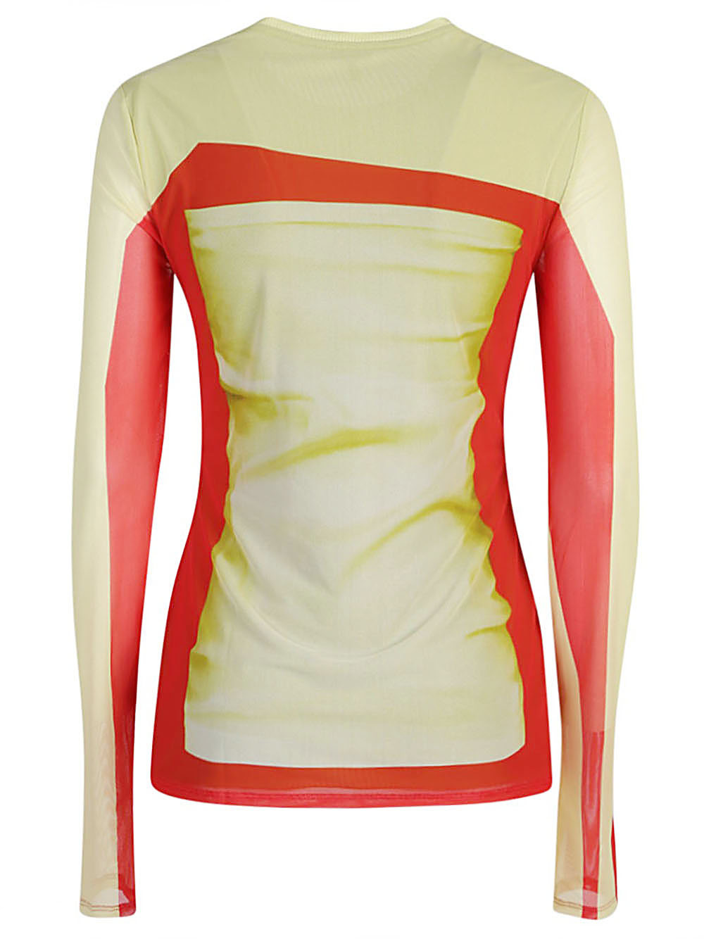 Slim fitness, regular length, siluet of the second skin, digital printing plailed trompe l'eil, crew, long sleeves, elasticized jersey lining, anagram embroidery placed on the back.