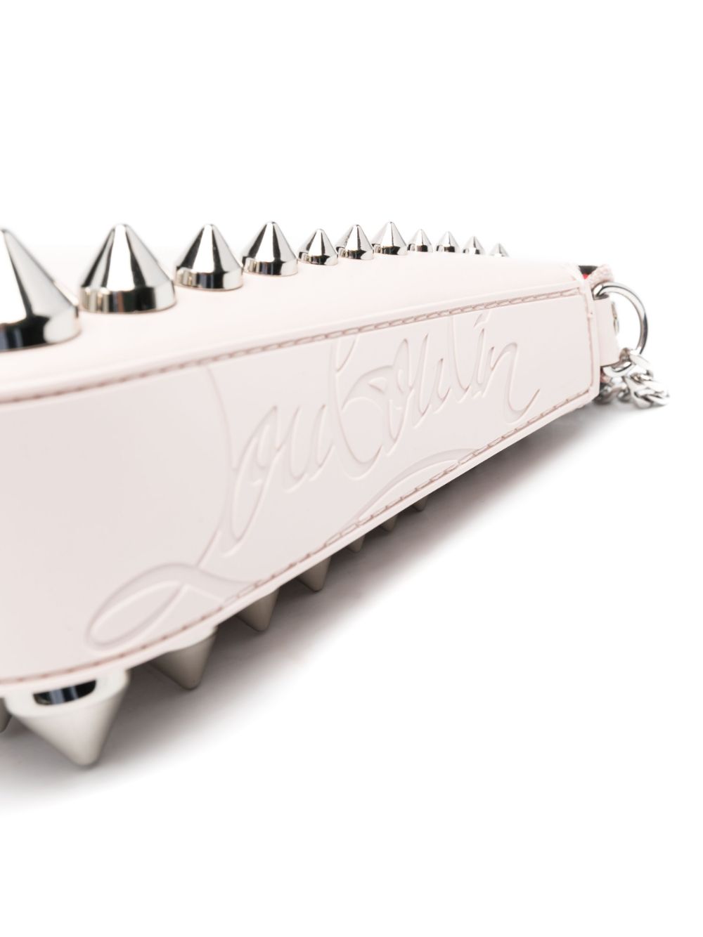 Loubila spike-detail clutch bag from CHRISTIAN LOUBOUTIN featuring white, calf leather, debossed logo to the side, spike stud detailing, silver-tone hardware, internal logo patch, contrast lining, top zip fastening, adjustable detachable shoulder strap and main compartment.