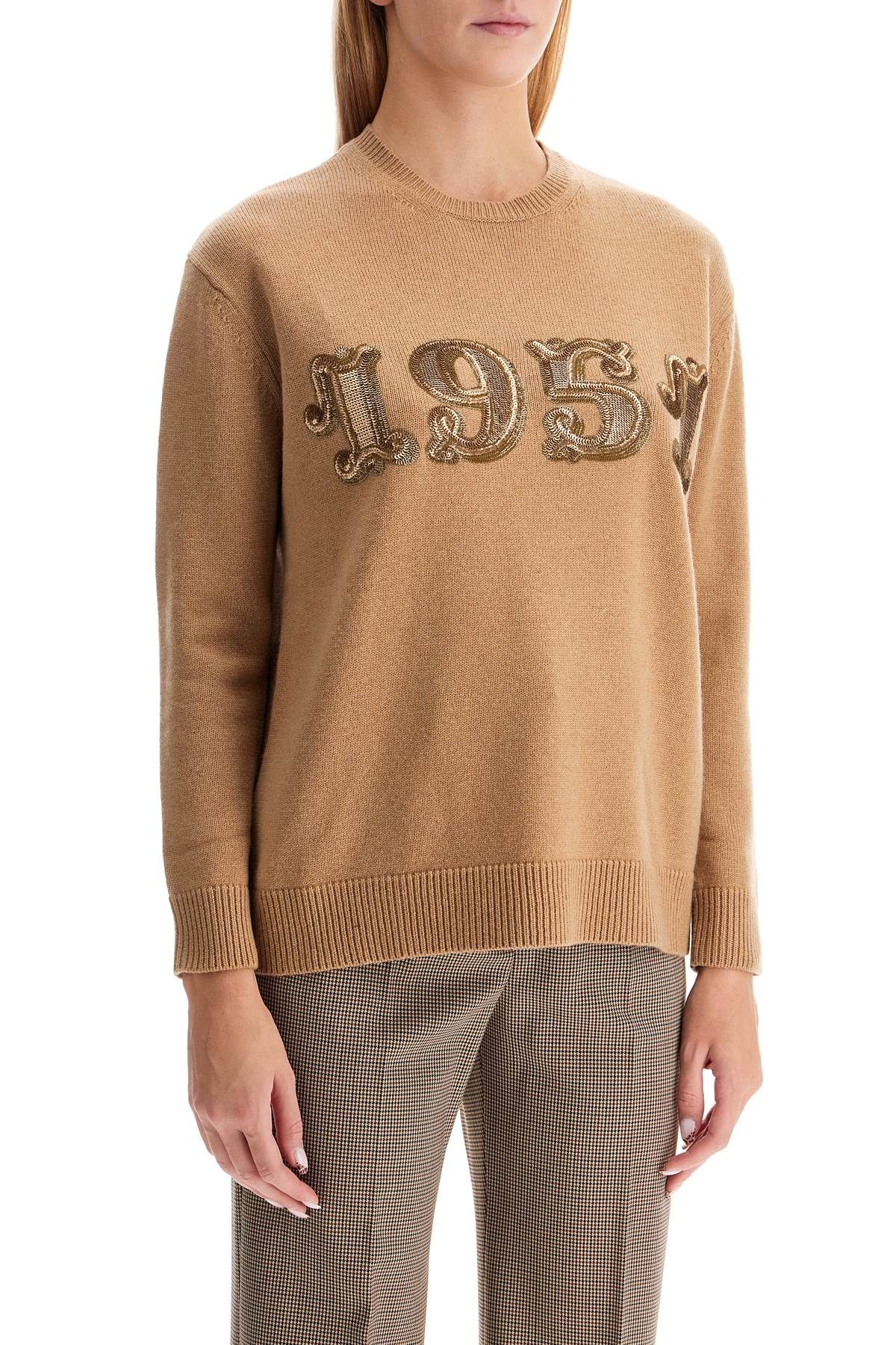 This Max Mara pullover is made of ribbed wool and cashmere, embellished with a sequin 1951 embroidery on the chest