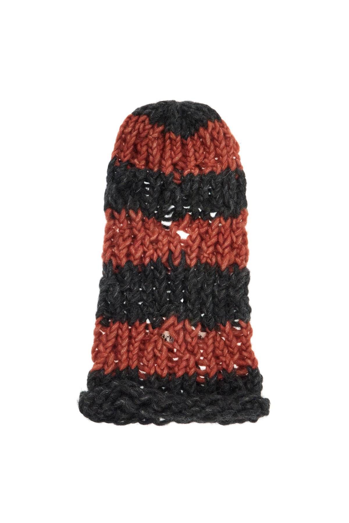 The Balaclava Helmet 2 by Crusade is made of a wide melange knit fabric with a striped pattern, perfect for keeping you warm and stylish