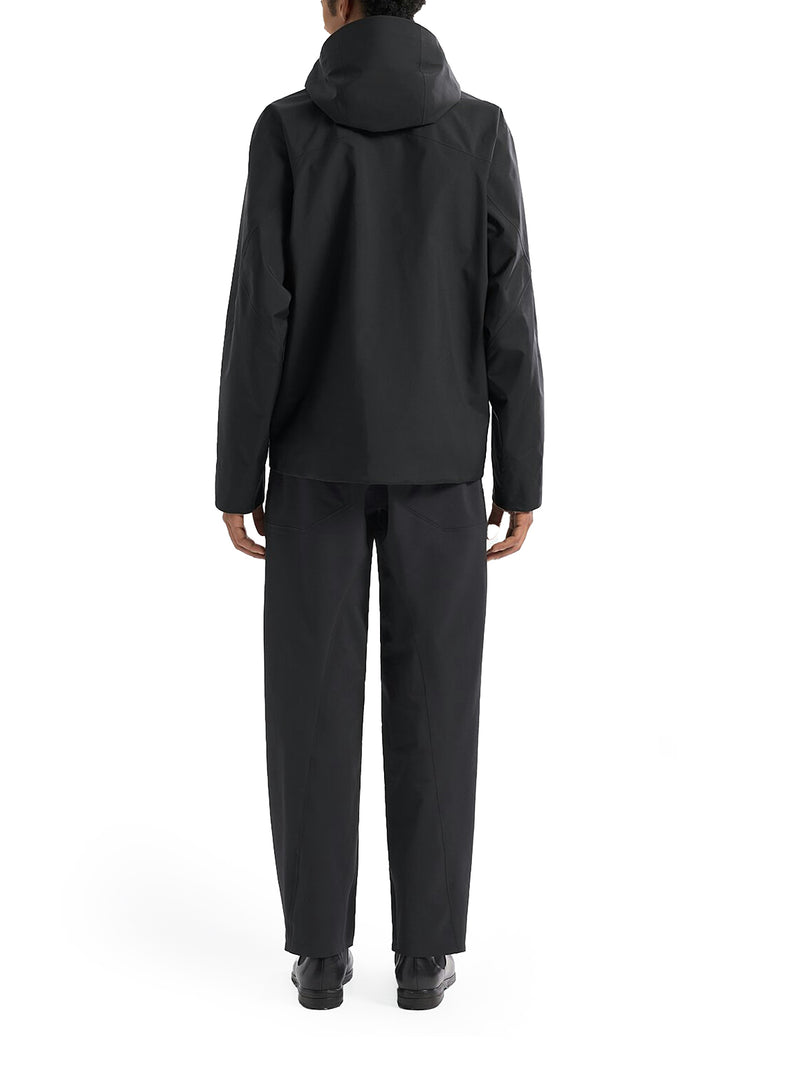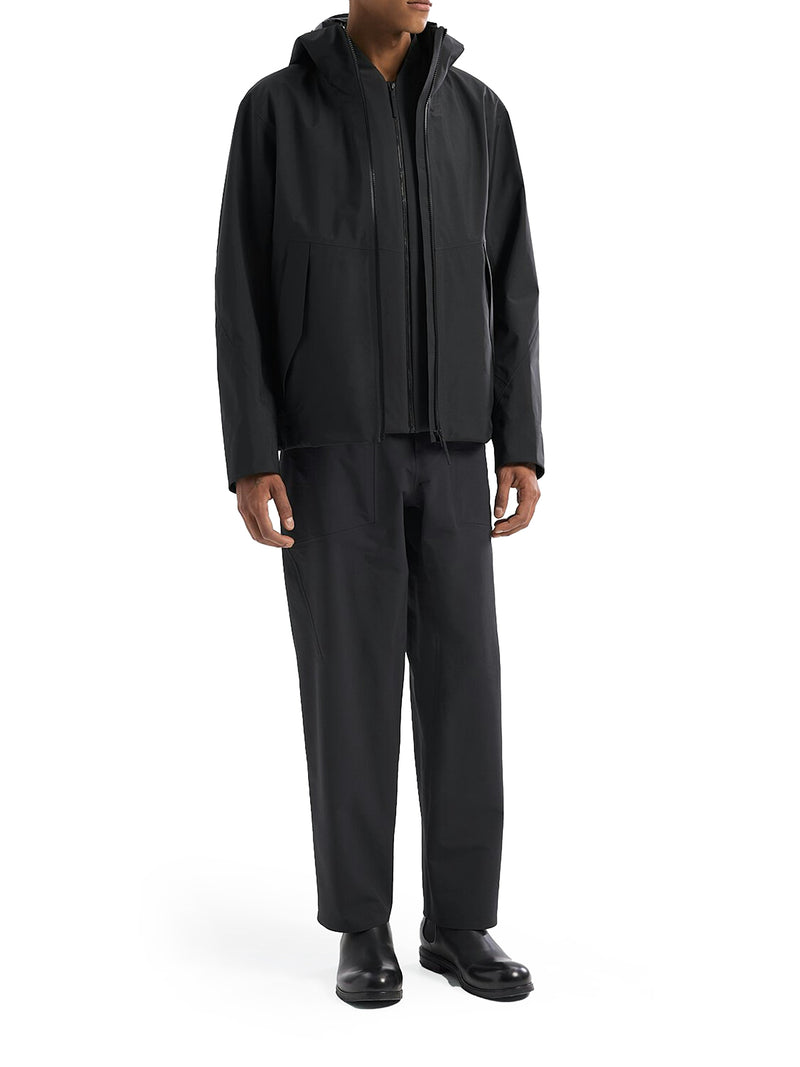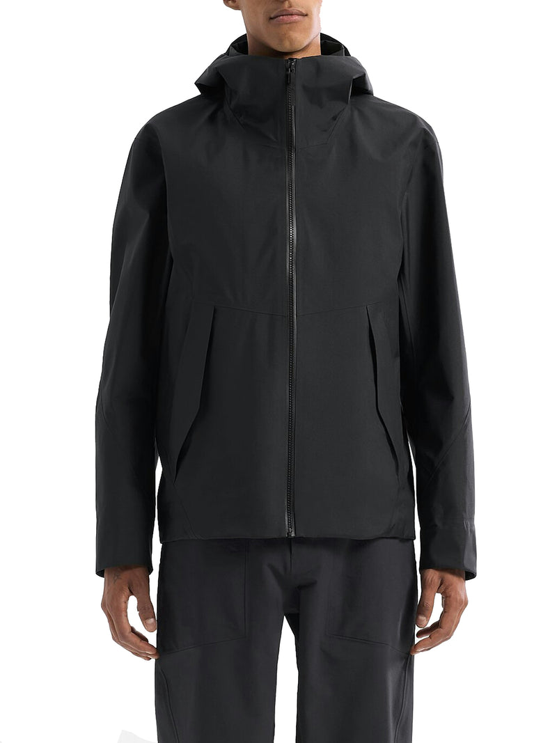 -waterproof and breathable hardshell -hood with precision adjustment system to optimize the fit -weatherproof collar for complete coverage -pockets, internal and external -black