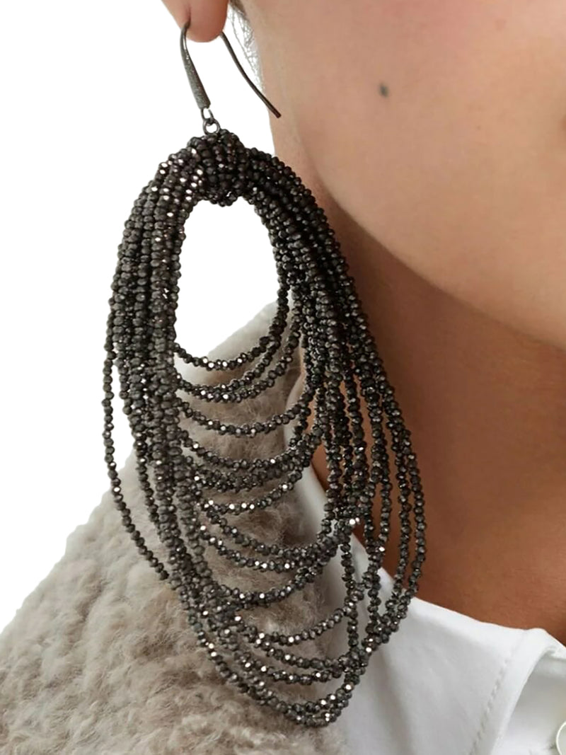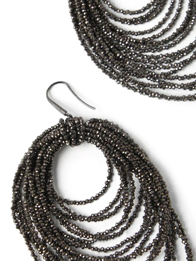 -brown -sterling silver -polished finish -beaded chain -chain design -hook closure -fits pierced ears -These earrings are sold as a pair