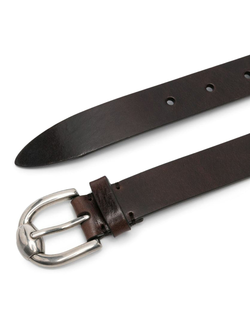 -cedar brown -calf leather -knurled texture -adjustable design -buckle holes -silver-tone buckle closure