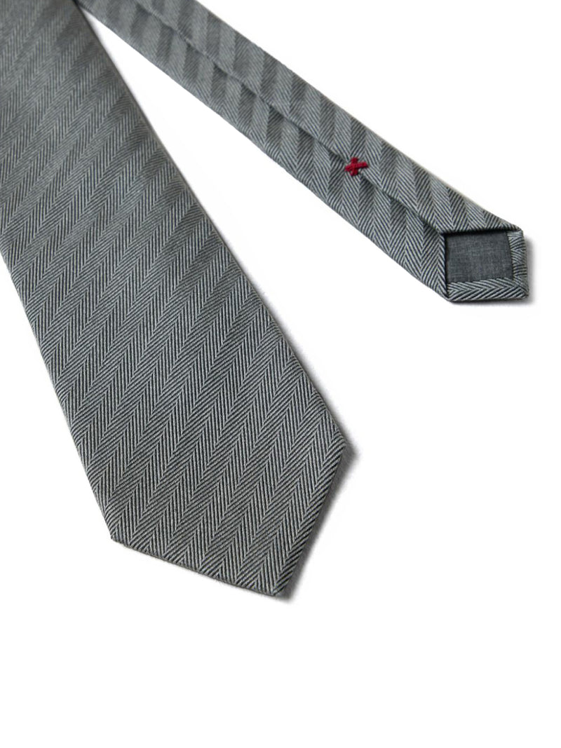 -ash grey -silk -striped detail -diamond point design -adjustable design