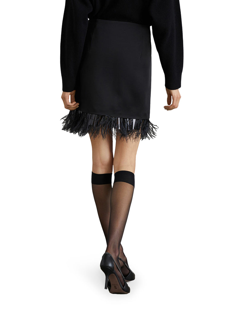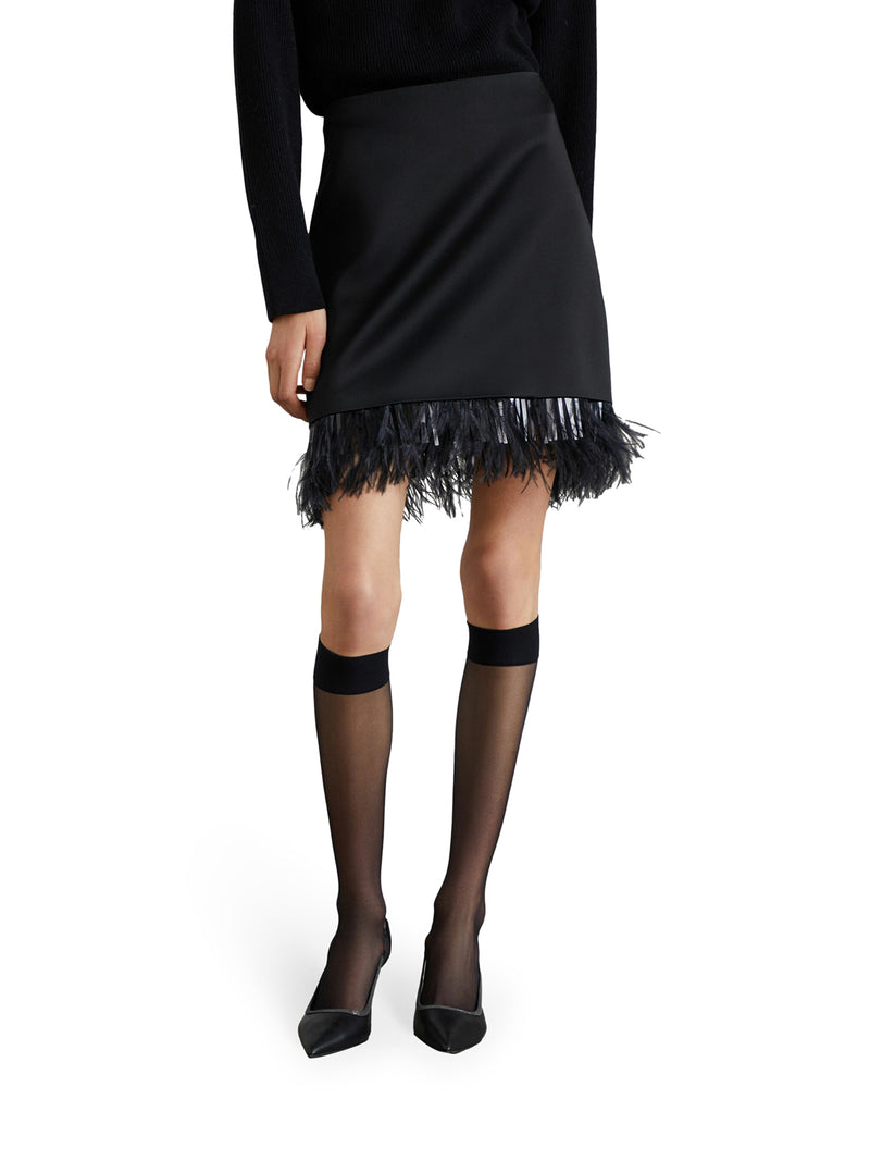 -black -feather detail -flared design -high-waisted style -flared hem -above-the-knee length