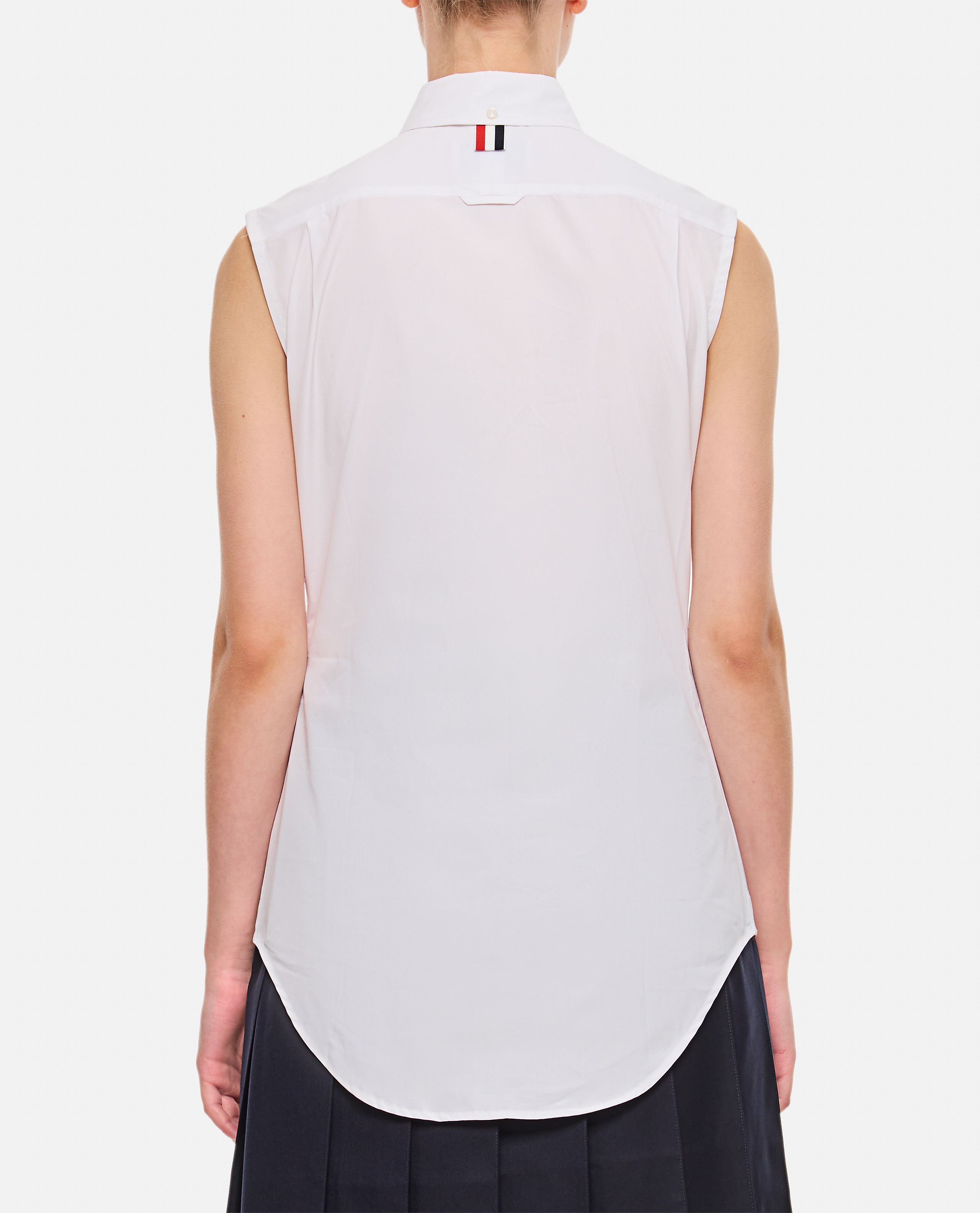 Classic sleeveless shirt with pointed collar and grosgrain buttoning. Color: white