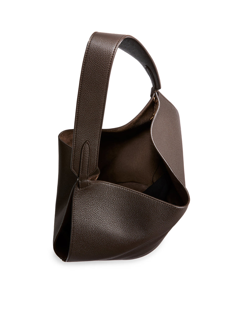 -calf leather tote bag -designed to be particularly light -rounded base -jewel-like snap closure inside