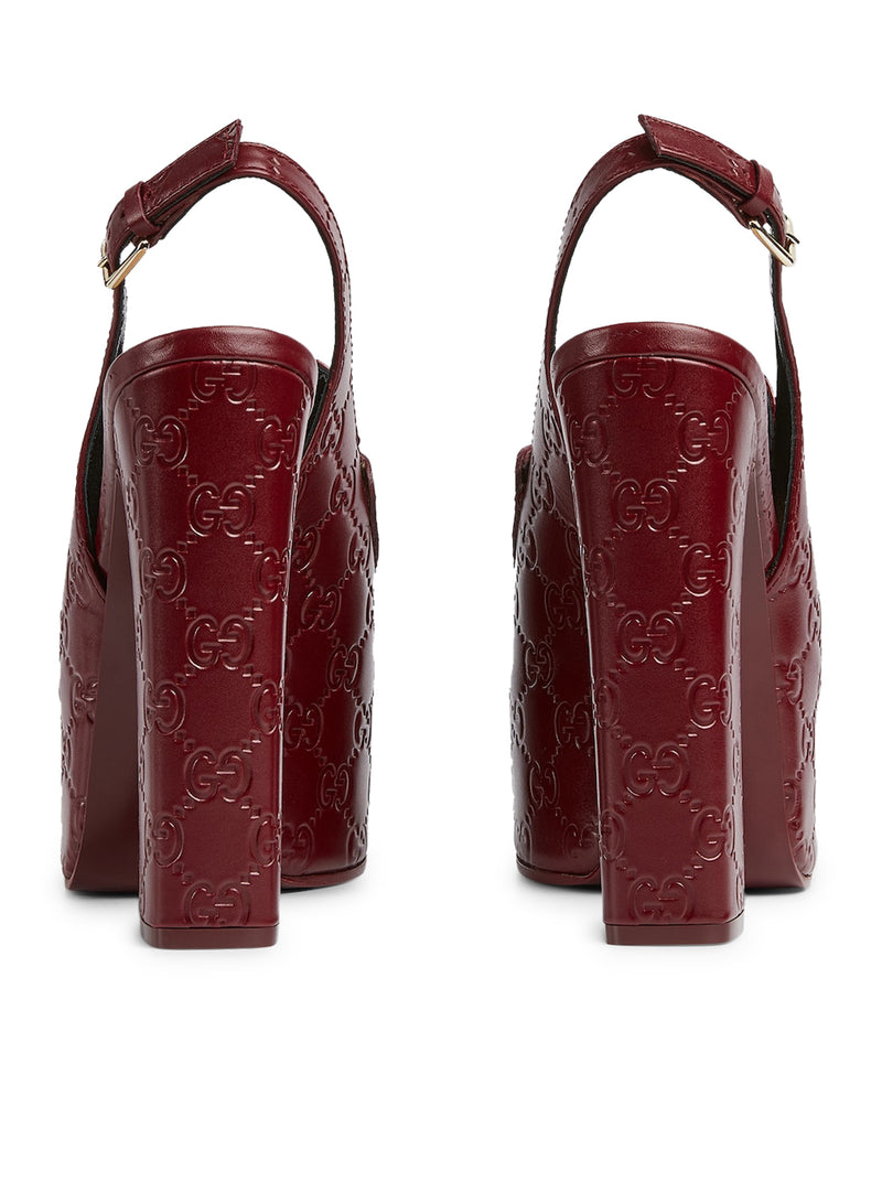 -GG Gucci Red Anchor Leather -Women -Light gold-colored finishing -Clamp -Tone-on-tone leather sole -Adjustable ankle closure with buckle -High heel -Height: 14.5 cm