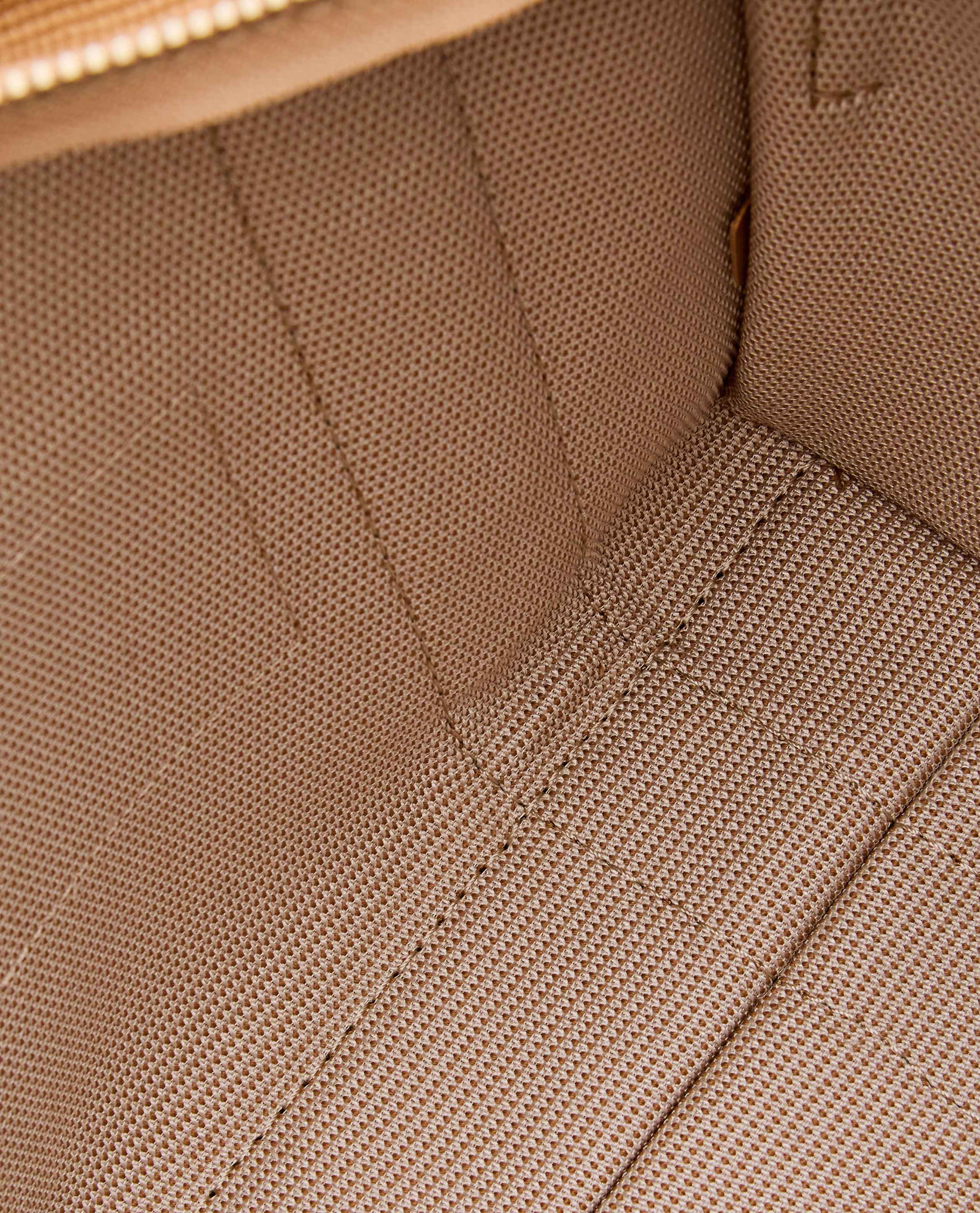 Woven jacquard.Top zip closure.Top handle, removable and adjustable webbing strap.Color: beige.