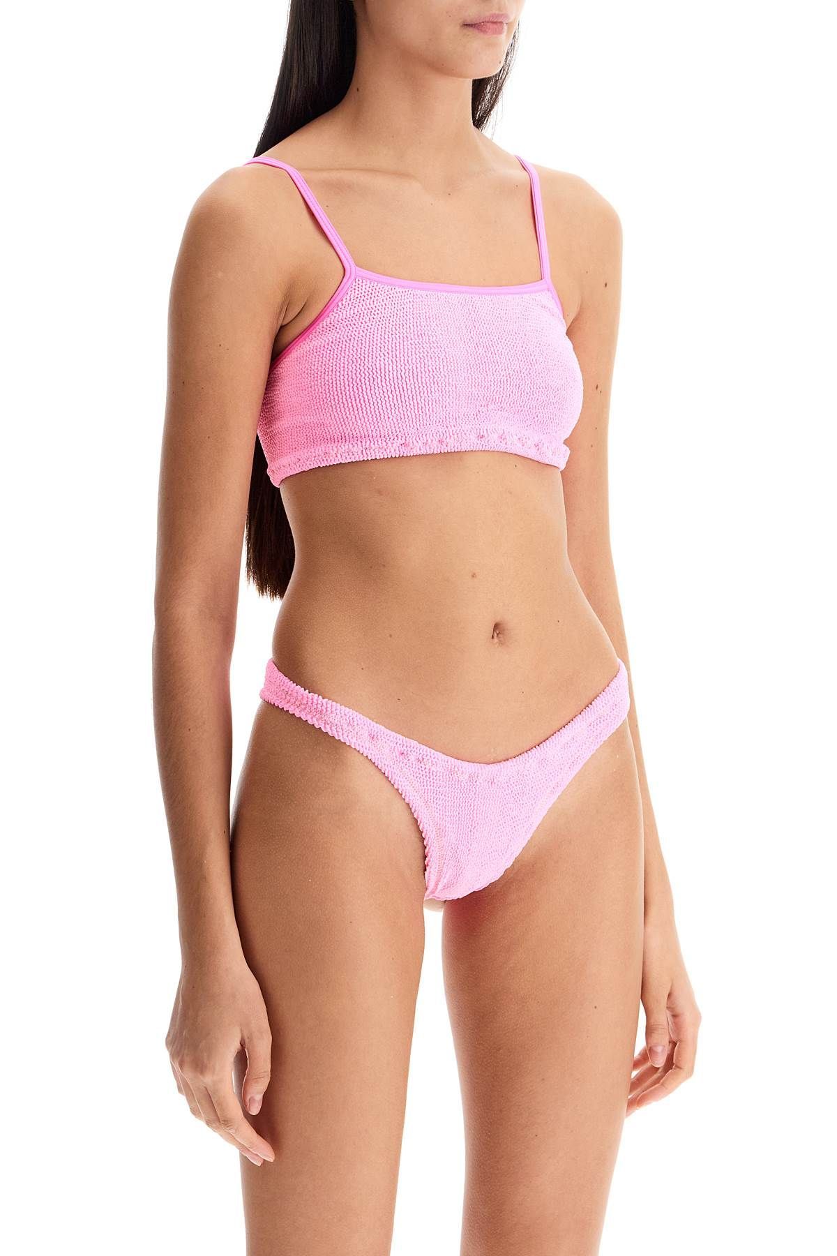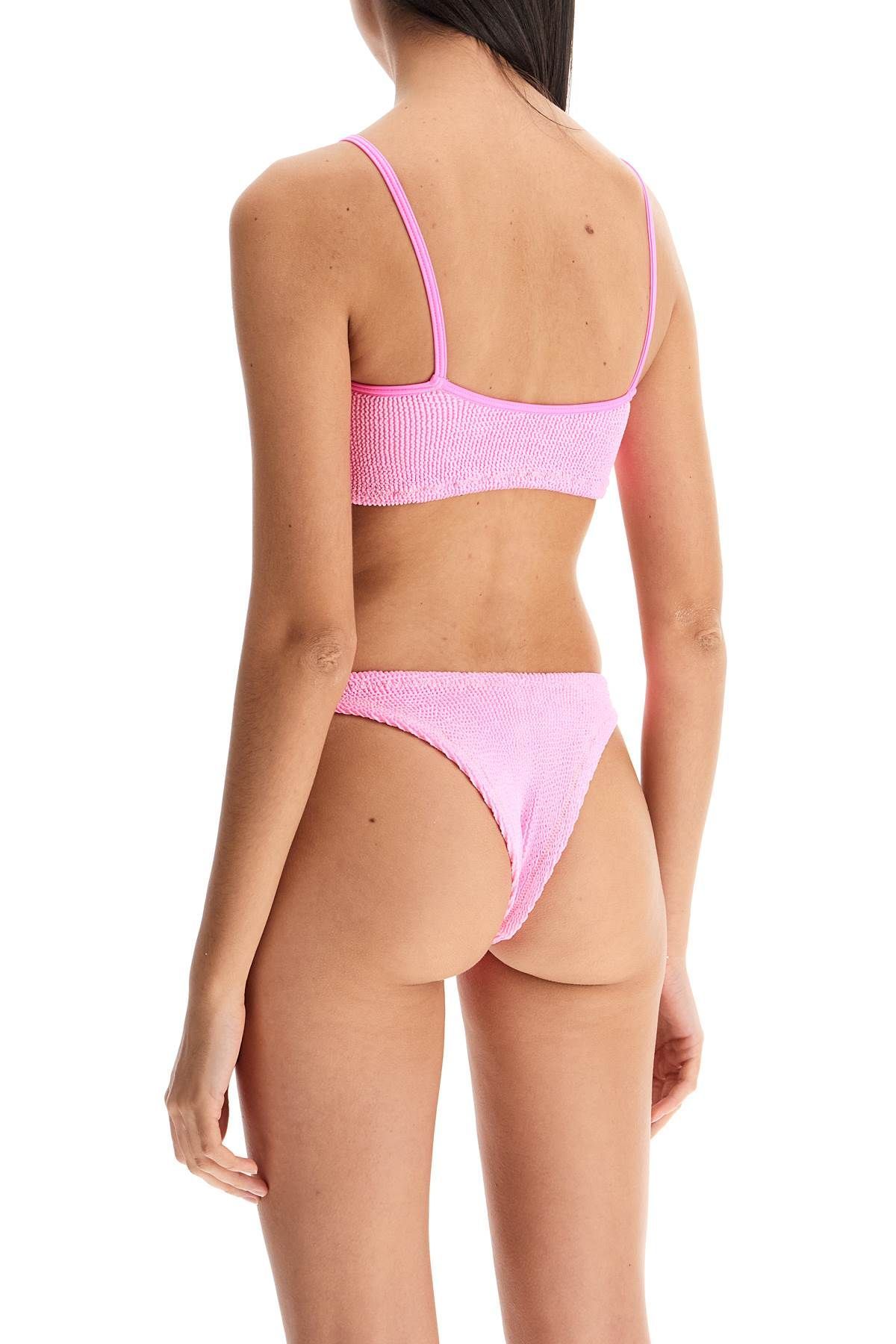 The Ginny Spaghetti Bikini by Reina Olga is made of embossed stretch fabric and features a bandeau top with thin straps and high-cut bottoms