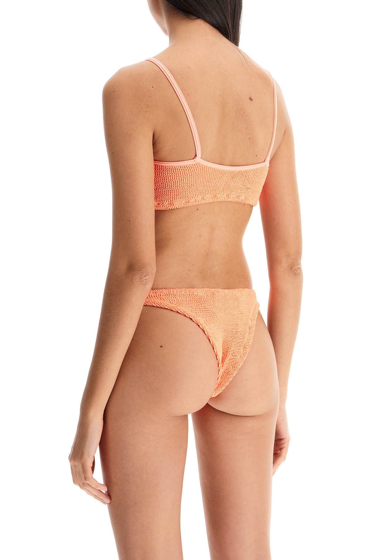 The Ginny Spaghetti Bikini by Reina Olga is made of embossed stretch fabric and features a bandeau top with straps and high-cut bottoms