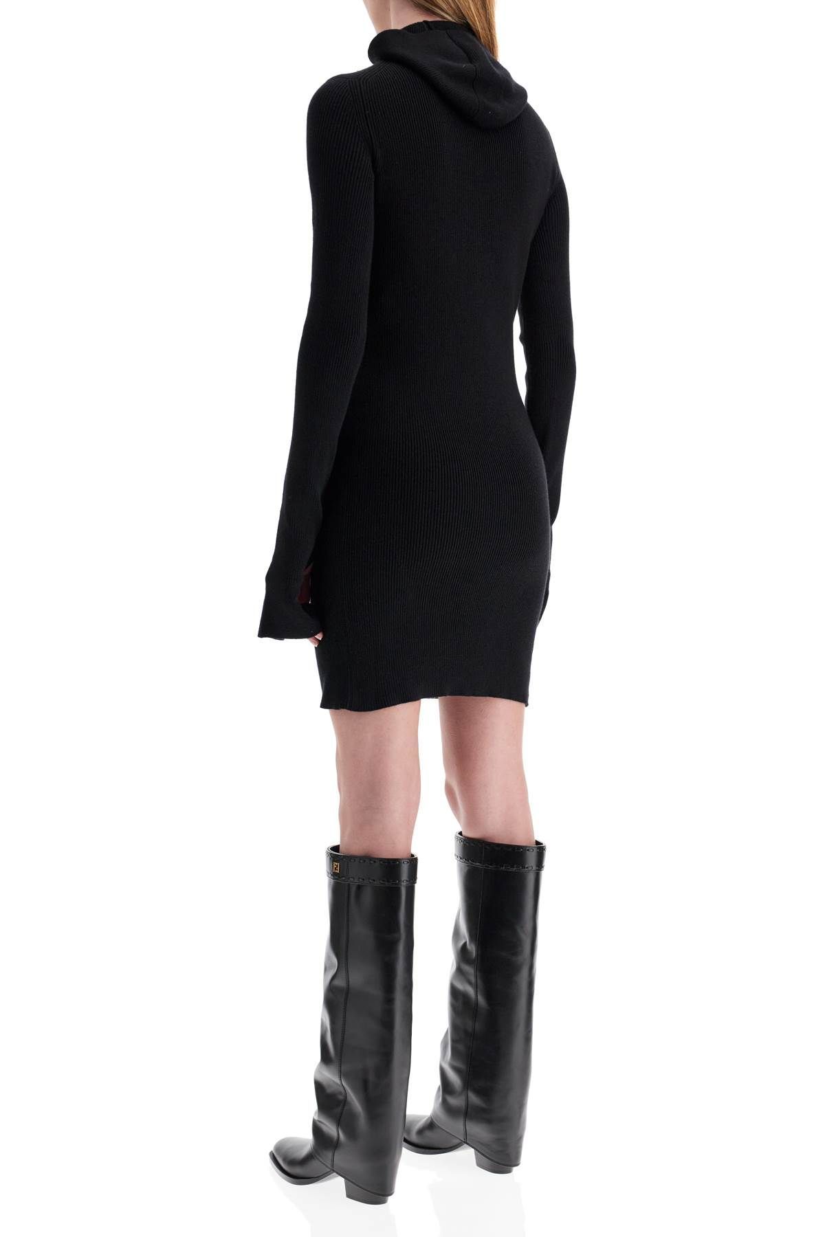 This Fendi mini dress has a fitted silhouette and is made of ribbed wool and silk blend fabric