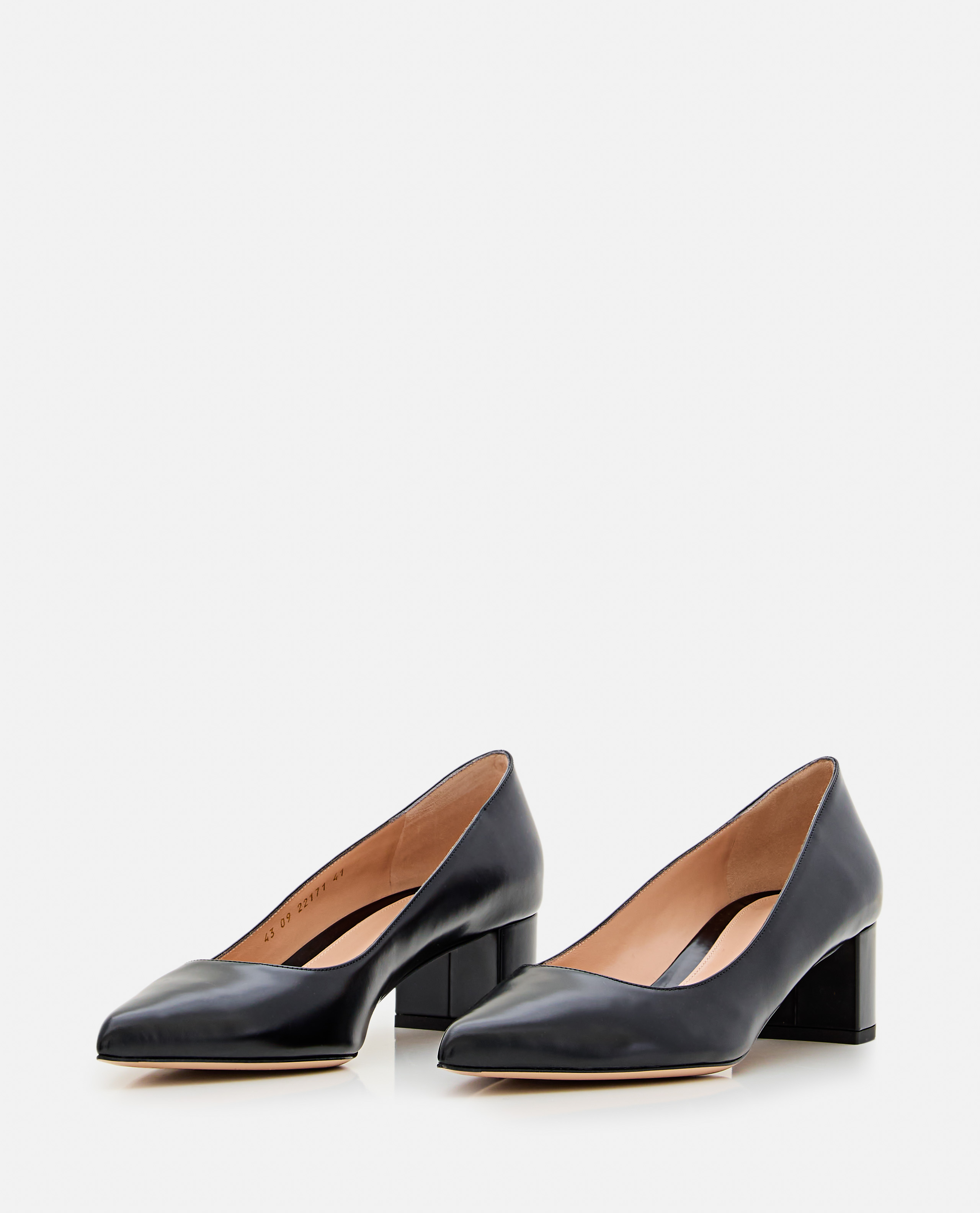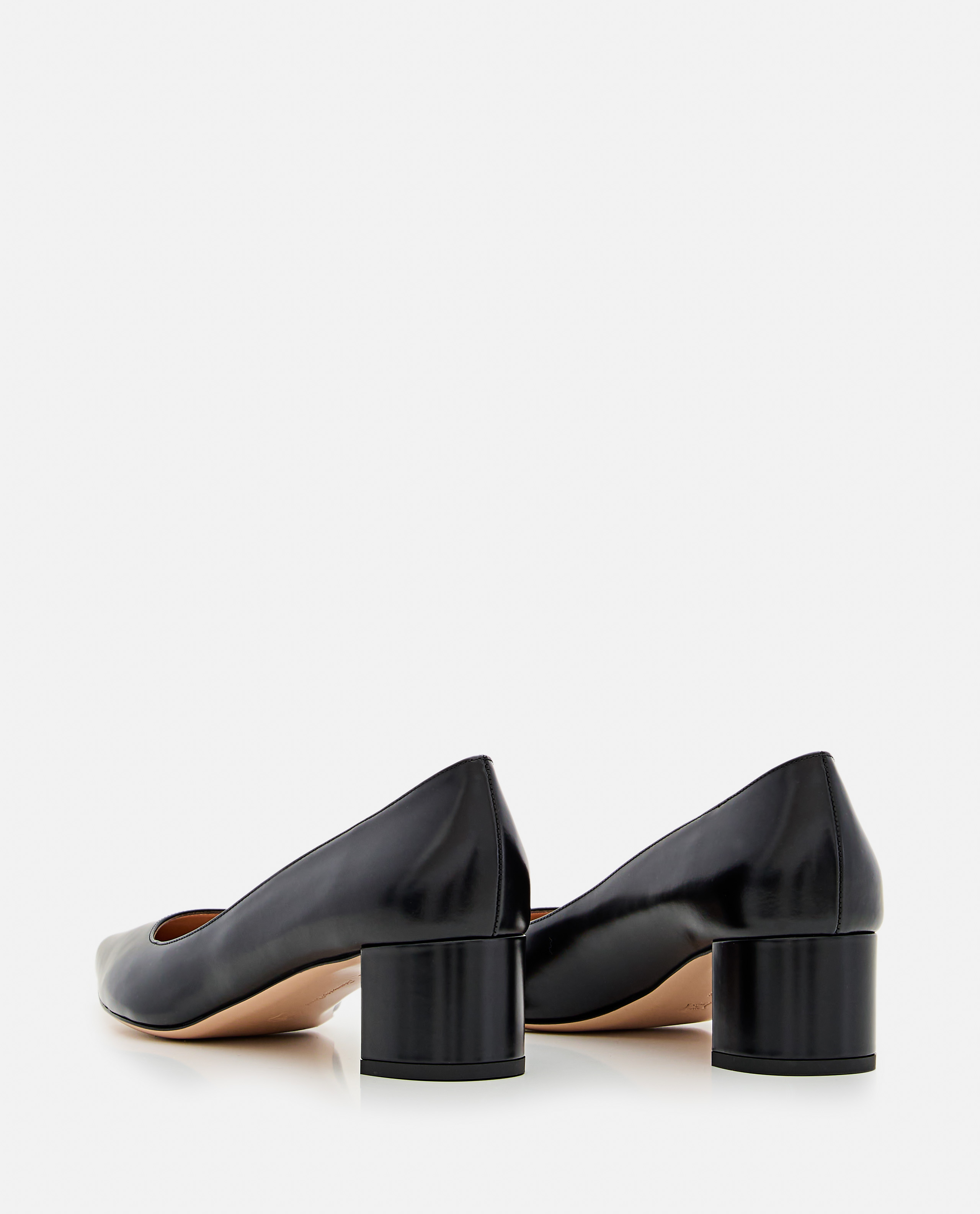 Almond tip.Leather upper.Square heel.Color: Black.