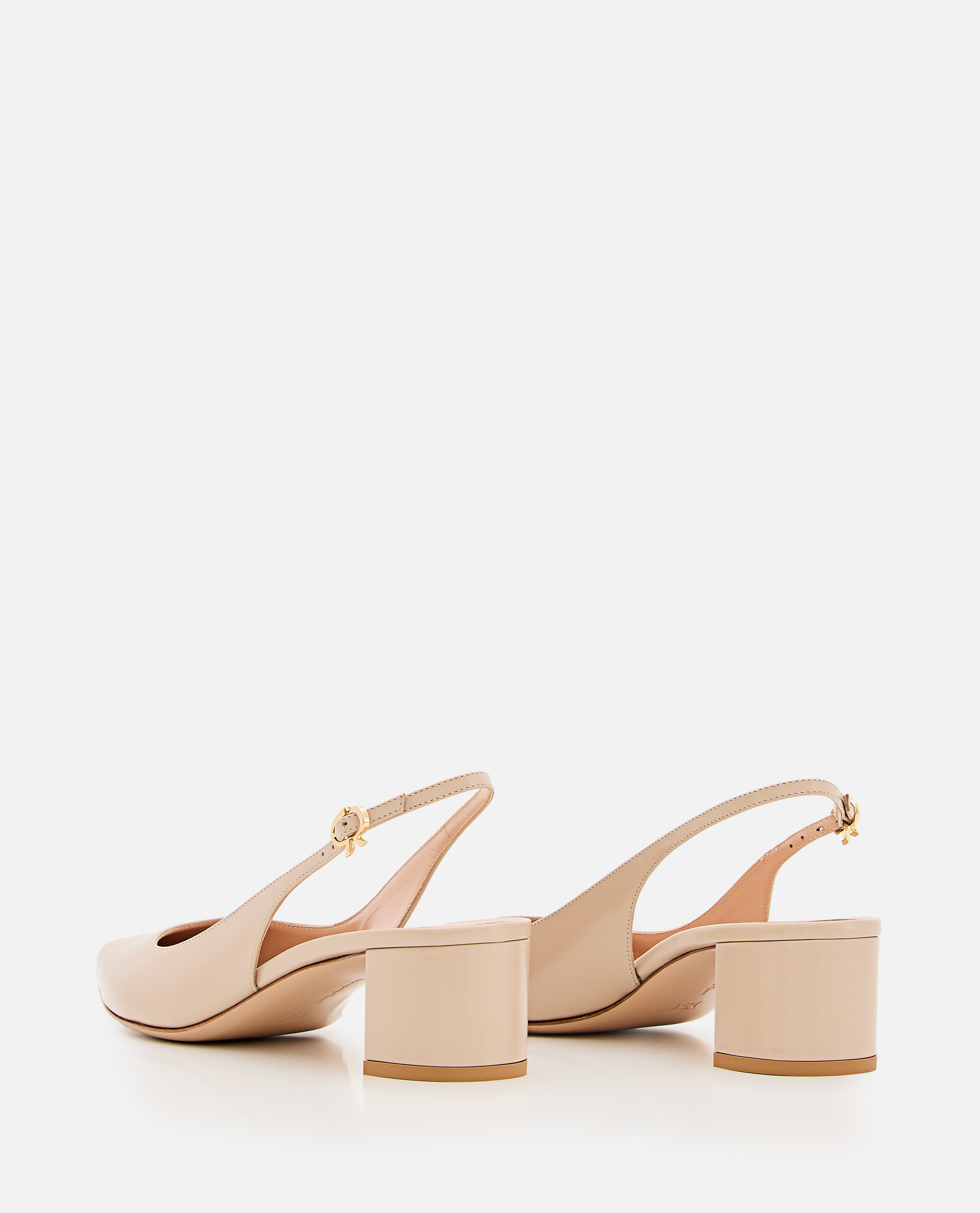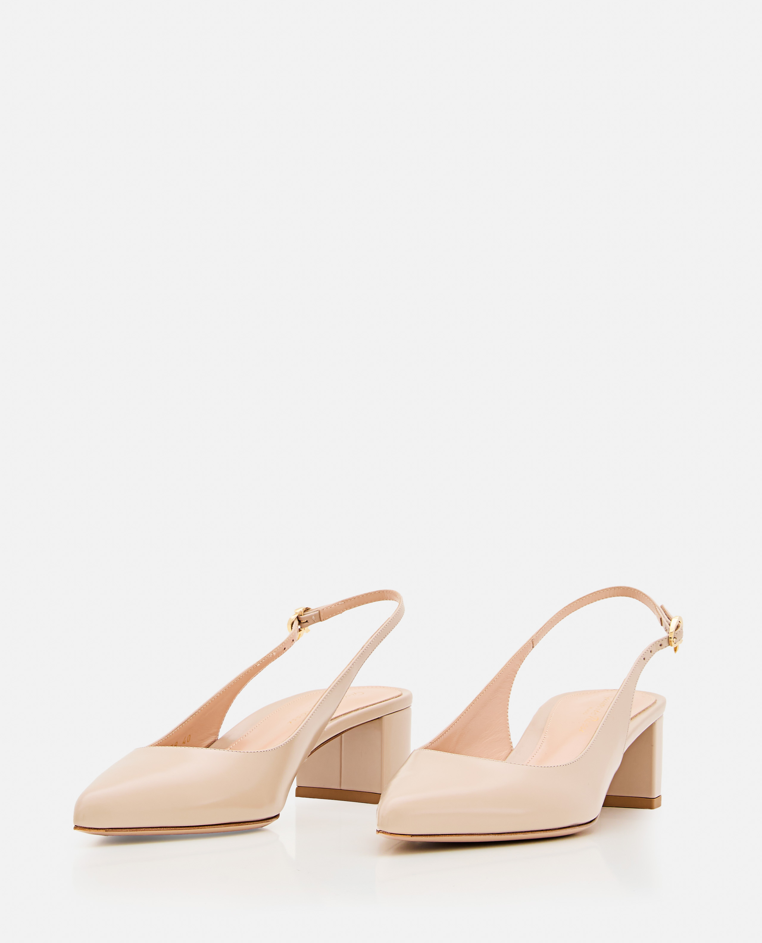 Pointed leather slingback shoe. Logoed buckle closure. Medium heel. Color: nude