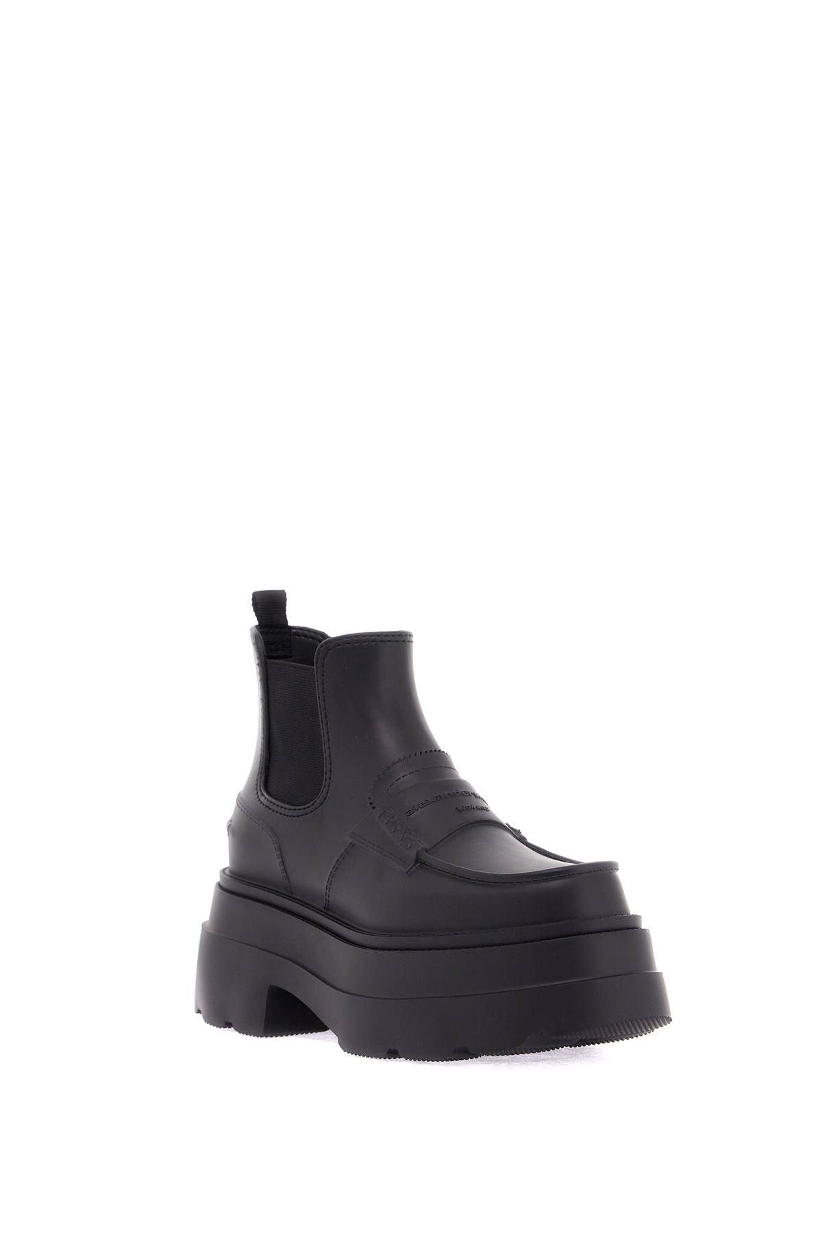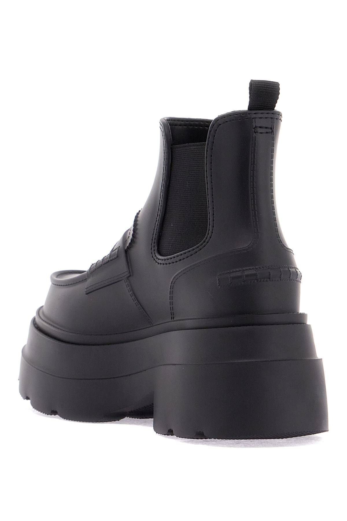 The Carter rain boots are made entirely of rubber with a moccasin design and embossed logo lettering