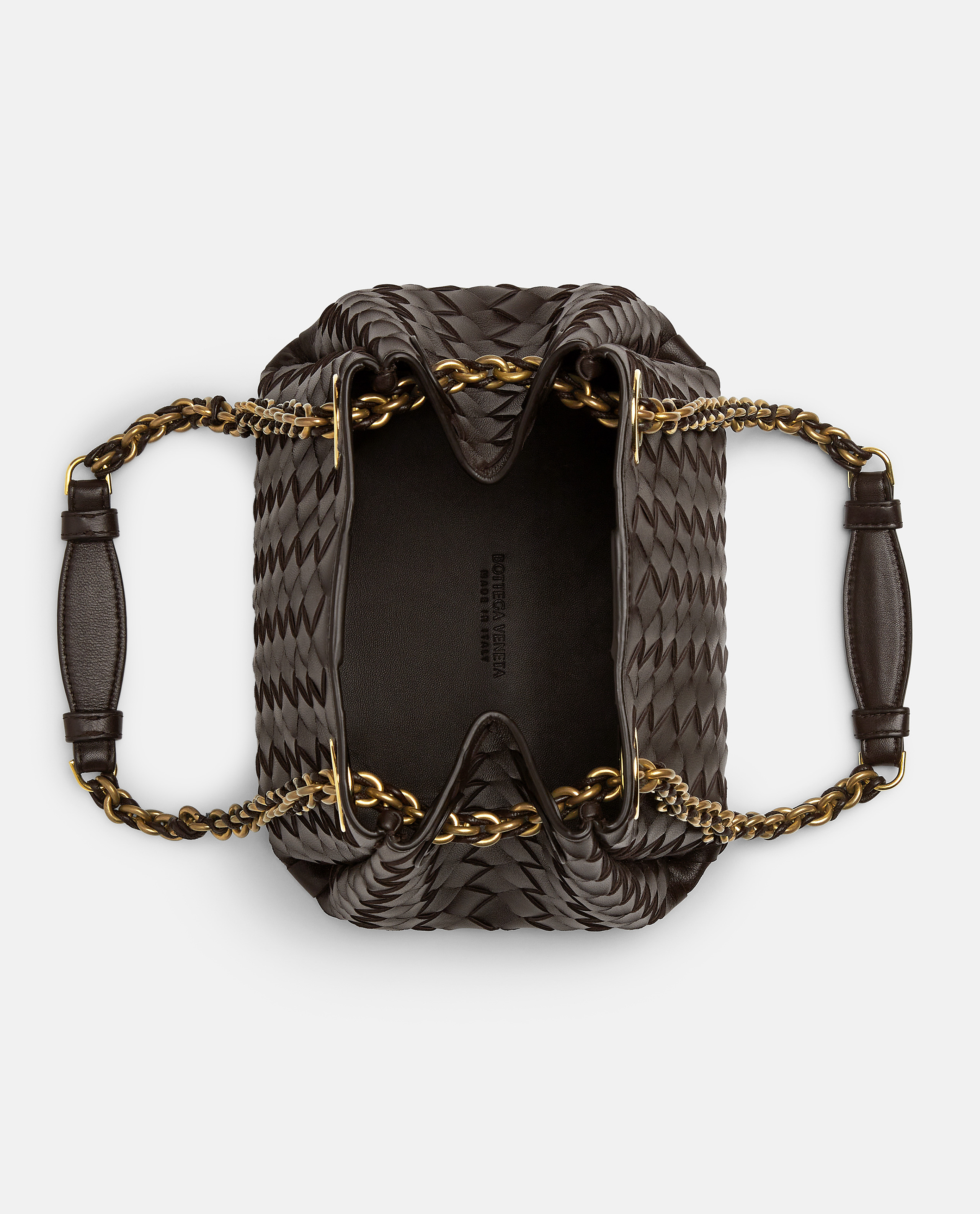 Small Parachute shoulder bag by Bottega Veneta. In calfskin with woven pattern and removable shoulder strap. Magnetic closure. New Arrivals SS25.